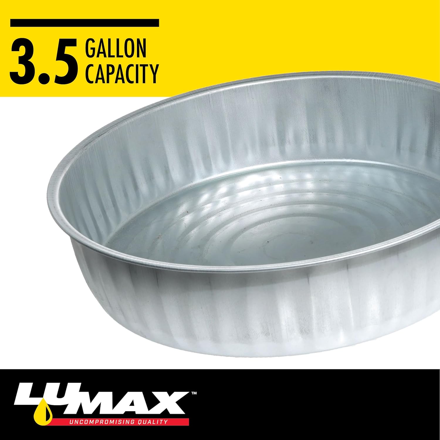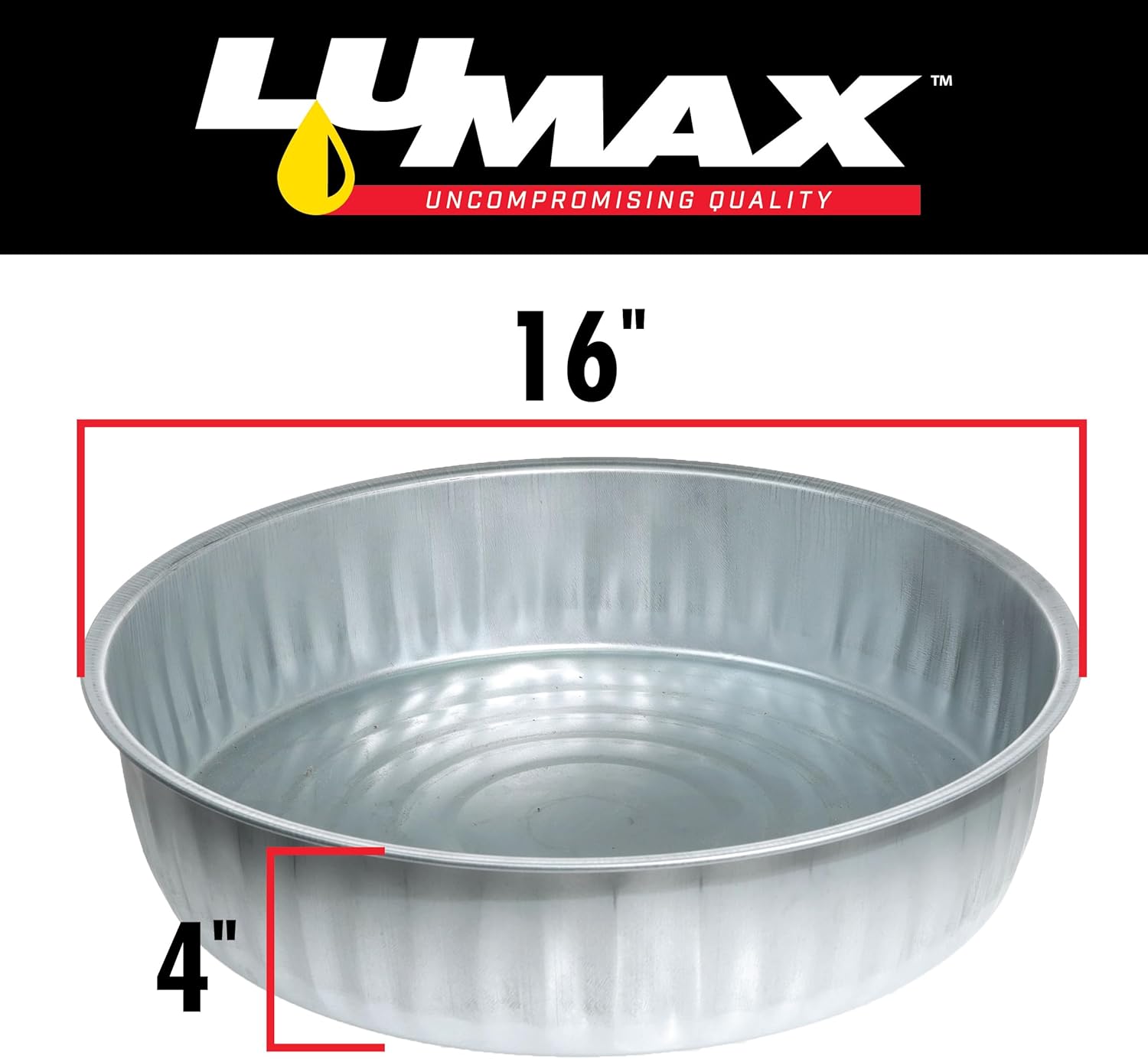 LUMAX LX-1709 Silver 3.5 Gallon (13.5 L) Galvanized Drain Pan, Bright Zinc Corrosion-Resistant Finish, 16 inches in Diameter x 4 inches High, Great for Oil Changes