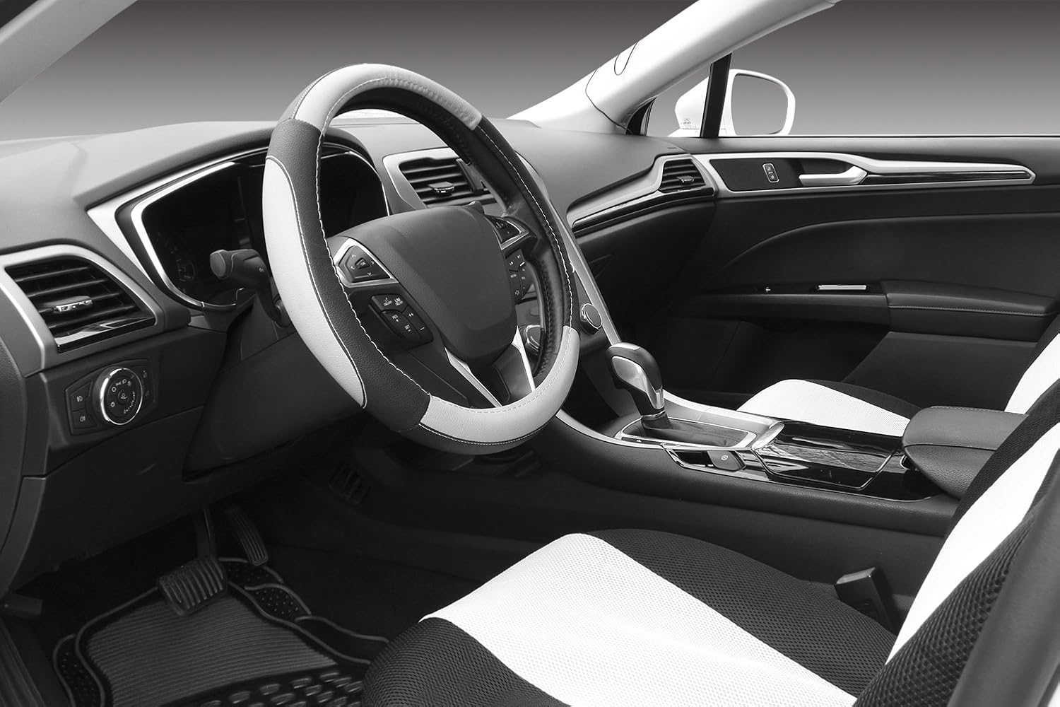 - ARMOR UP YOUR CAR INTERIOR: The durable and easy-to-install steering wheel cove is the premier option for covering an old or worn original factory steering wheel. The delicate splicing design adds texture to the interior of your car.
