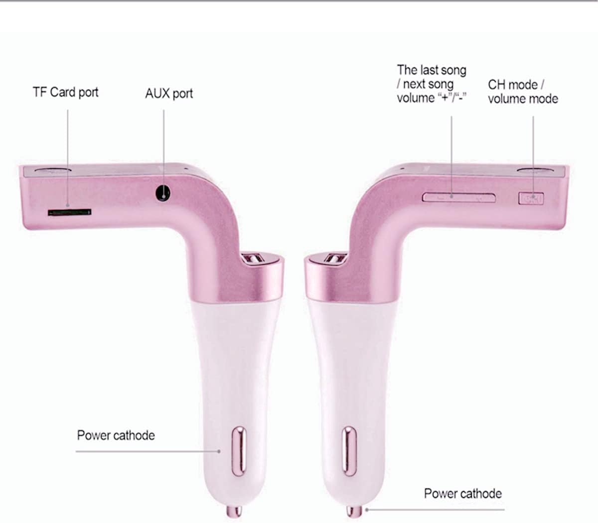 - 🚗【Easy to Pair&Fast Adjust Station】1)turn on car FM to an empty channel(88.1~107.9MHz)(eg:107.9) with pure rustling sound; 2)The diameter of the product is 22mm/0.87inch. plug G7 into car cigarette lighter socket tightly and start the car; 3)click the "CH" key by the side of G7, press the "+" or "-" to adjust the frequency same as car FM(eg:107.9); 4) turn up the "G7" volume to 30 MAX by long click "+" and phone volume to max. increase car FM to adequate volume to receive HD sound.