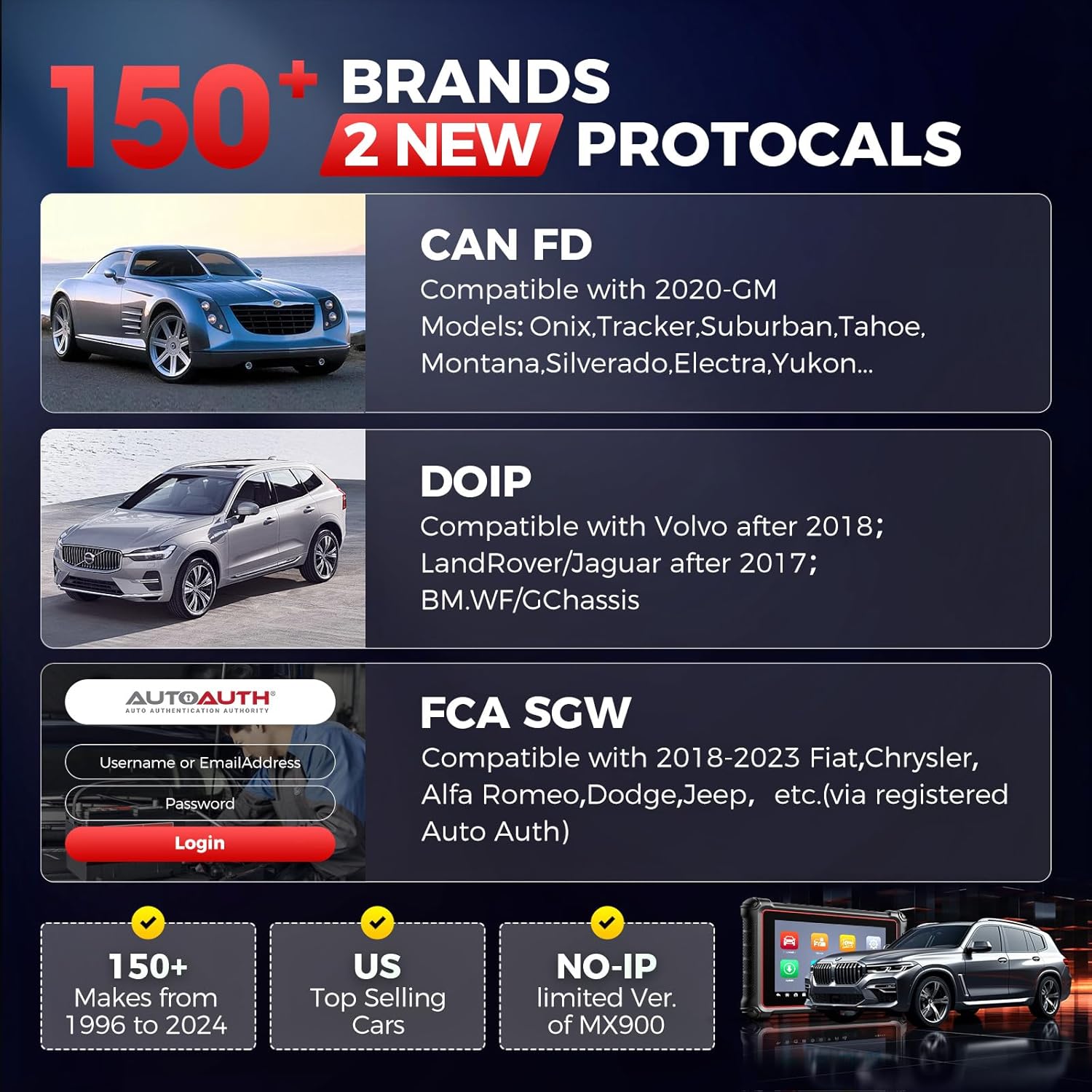 - 🆕【NEW DoIP & CAN-FD, 150+ Brands Coverage】You can always trust Autel scanners: #1 car coverage in industry, superior to most scanner automotriz. If you work on diverse makes/models worldwide, this 2025 Autel MK900 will satisfy you. It’s got the same vehicle coverage as high-end Autel scanners value at 2000 bucks: 150 brands (EU/US/Asian), US top-selling models (1996-2025), FCA & Renault SGW, DoIP & CAN-FD (won't see in equal-level bidirectional scan tools). NO-IP limited version of MX900.