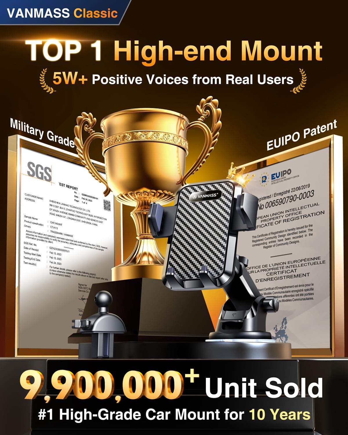 - 【𝐁𝐄𝐒𝐓 𝐂𝐡𝐨𝐢𝐜𝐞: 𝐇𝐢𝐠𝐡-𝐄𝐧𝐝 𝐂𝐚𝐫 𝐌𝐨𝐮𝐧𝐭 𝐓𝐫𝐮𝐬𝐭𝐞𝐝 𝐛𝐲 𝟗,𝟓𝟎𝟎,𝟎𝟎𝟎+𝐔𝐬𝐞𝐫𝐬 𝐨𝐯𝐞𝐫 𝟏𝟎 𝐘𝐞𝐚𝐫𝐬】2025 VANMASS car phone holder is certified by all authoritie5 (International Military-Grade Shockproof Cert No. GZMR230200285101, CP65,REACH,RoHS), based on Unique Grandmaster Design (EUIPO Patent No.006590790-0003), TOP Durable & Healthy Materials from 20,900 materials & Industry-Leading Safety Tests (Monthly 5,000+ open/close test; 100,000+km rugged road tests).