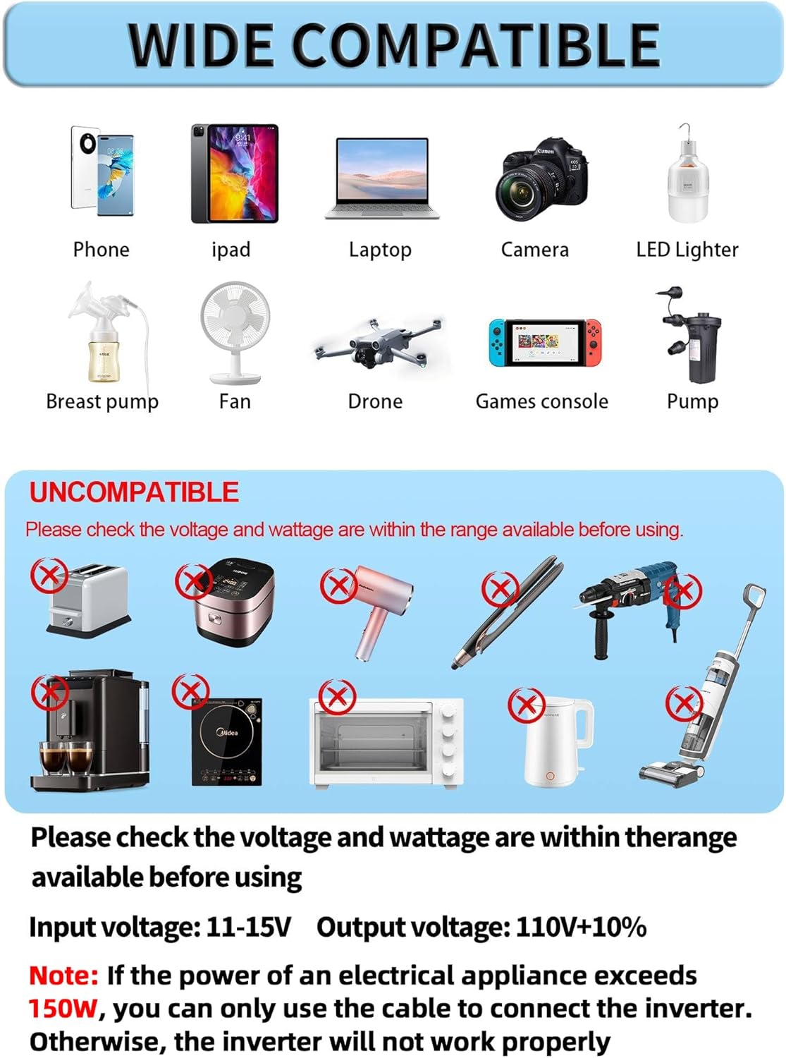 - [PERFECT FOR OUTDOORS] - The1000w 12v inverter gives power supply through dual AC outlets and USB charging ports for laptops, electronics and entertainment devices, no matter you’re at RV Camping, Road Trip, Van Life or even Travel.