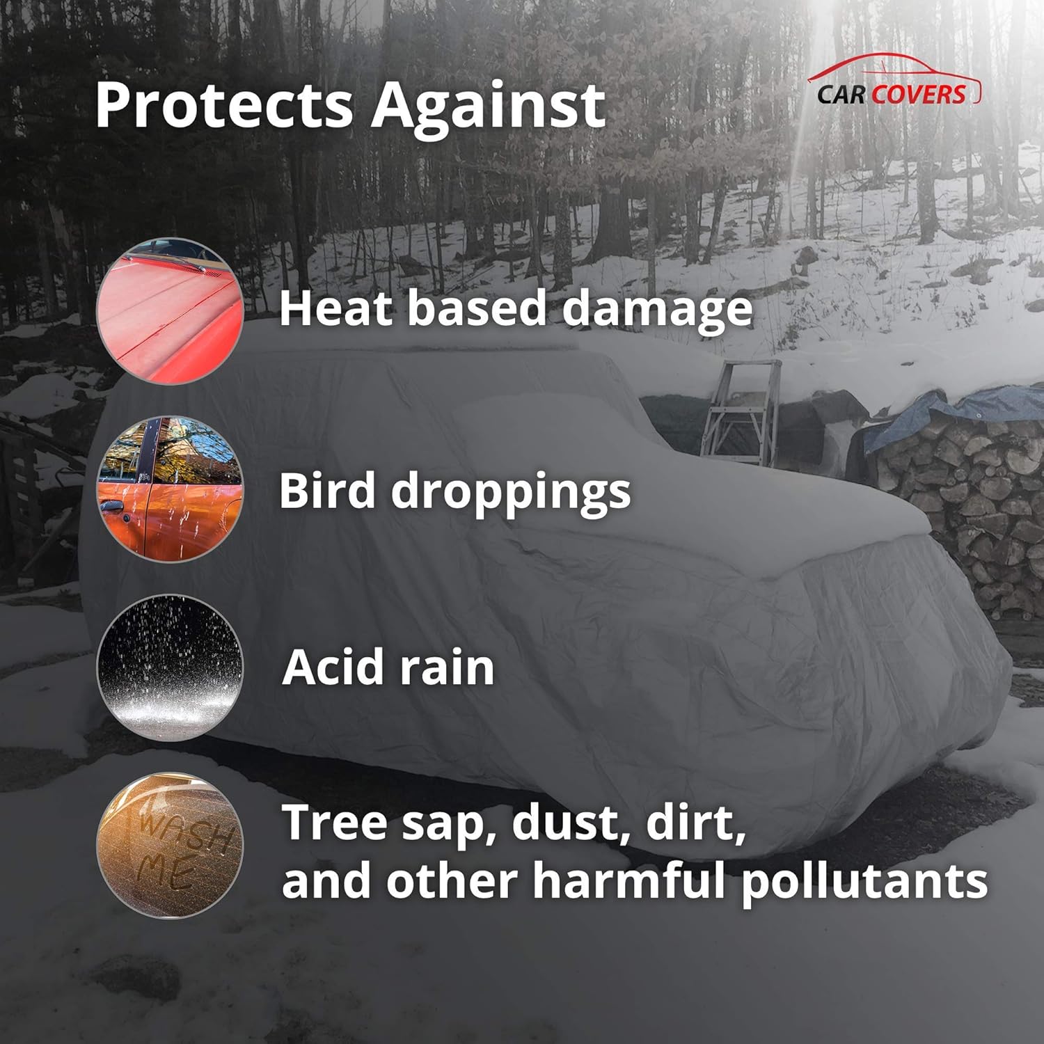 • YEAR-ROUND PROTECTION PREVENTS DAMAGE: Specially made full exterior covers for all indoor and outdoor elements, our top-quality multi-layer truck covers feature breathable interior fabric with double stitched, welded, and reinforced seams and an ultra soft fleece inner lining to protect paint and to ensure your vehicle’s surface finish stays in pristine condition.