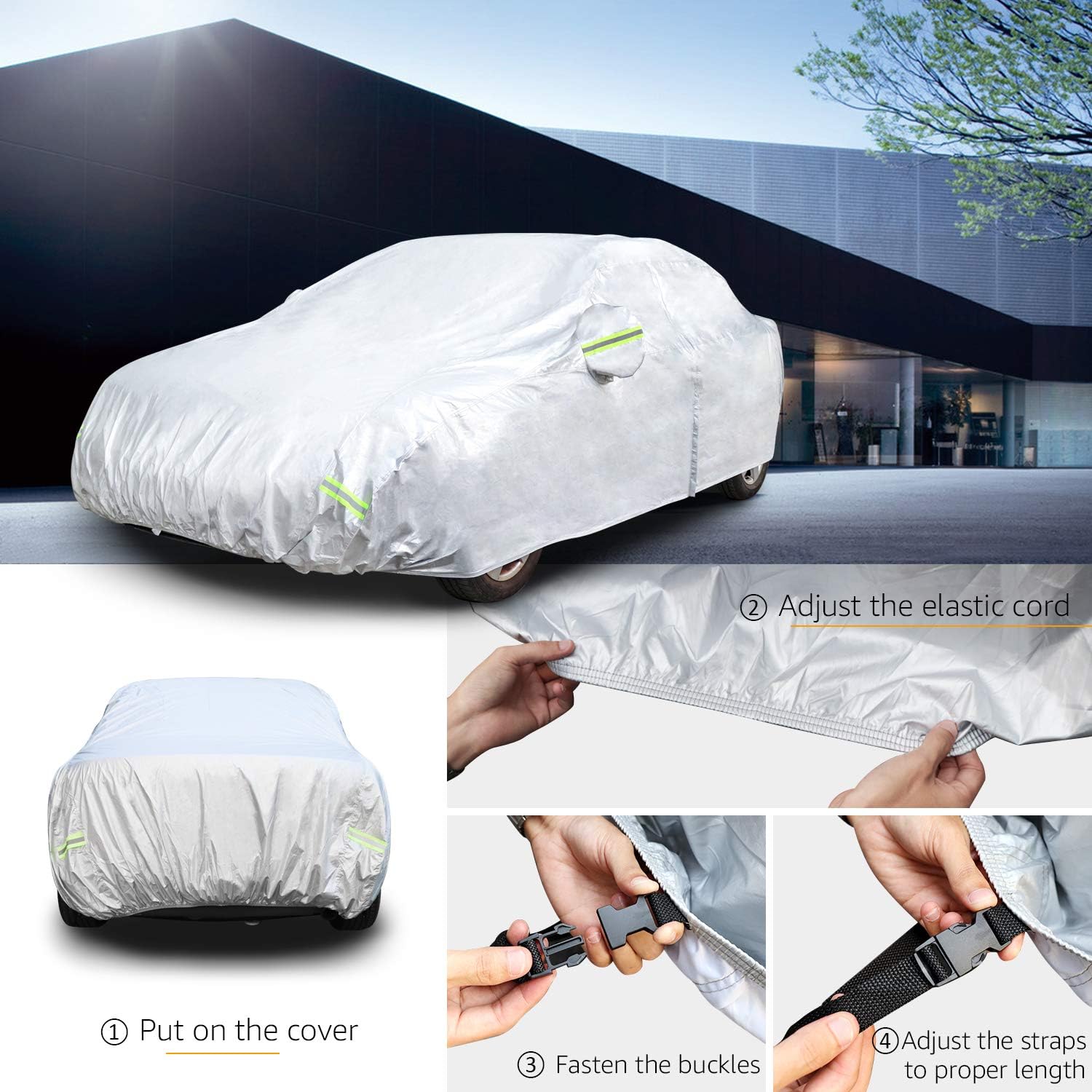 - The car cover fits sedans with length between 181 and 190 inches (483 cm) , like 2008-2012 Volkswagen Passat CC, 2020-2023 BMW 320i etc. Protects your car against outdoor elements, like damaging UV rays, dust, dirt, wind, snow, ice, and tree debris