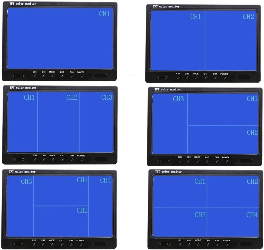- Easy to Install: 4-channel split car rear view monitor only need monitor connected to power, then the power could transfer from 4-pins aviation connectors extension cable to camera, neednโt to connect more cable, solve wiring inconvenience.