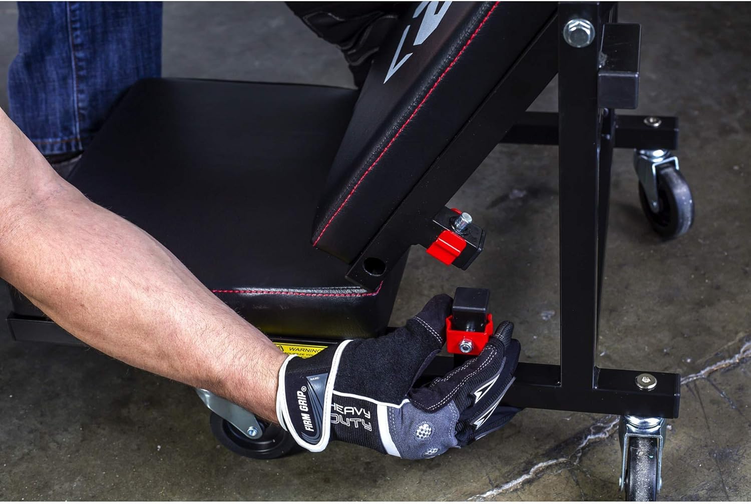 Powerbuilt 2-in-1 Rolling Creeper Seat Converts from High to Low Roller Seat, Fast, Tool-Free Conversion, Garage, Shop, Brake Jobs, Washing, Detailing, Maintenance, Thick Pad, 3-in. Casters - 240298