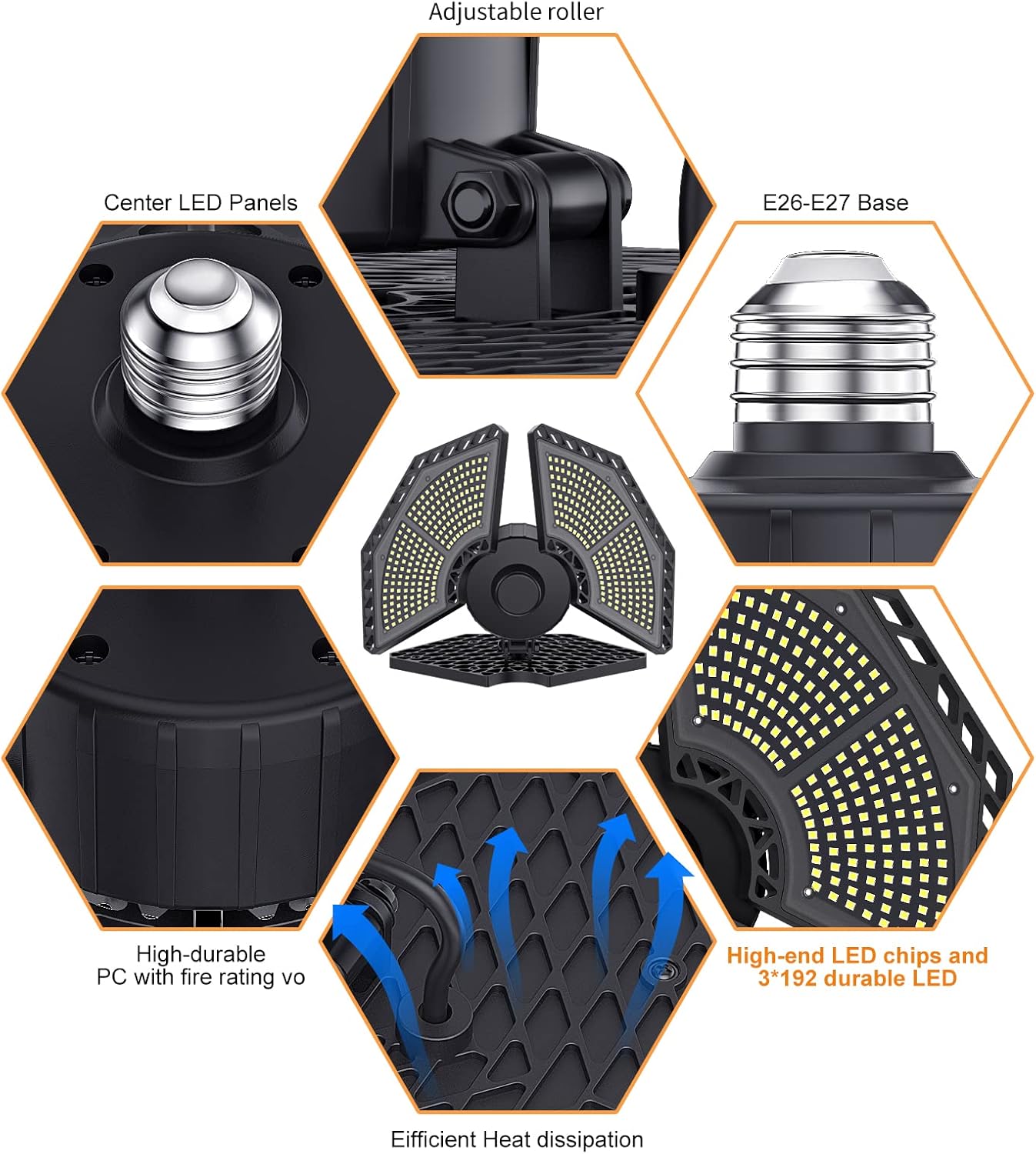- 💡EXCELLENT HEAT DISSIPATION AND ADJUSTABLE DESIGN💡The garage light adjustable LED Panel Heads can be folded to 120°, and the maximum coverage angle can reach 360°, which can make the light cover a wide area and meet your needs for different lighting angles and areas. The ceiling light panel is made of premium material, which is more solid and more durable. The hollowed-out panel design is good for heat dissipation and stability, which helps extend the life of the light.