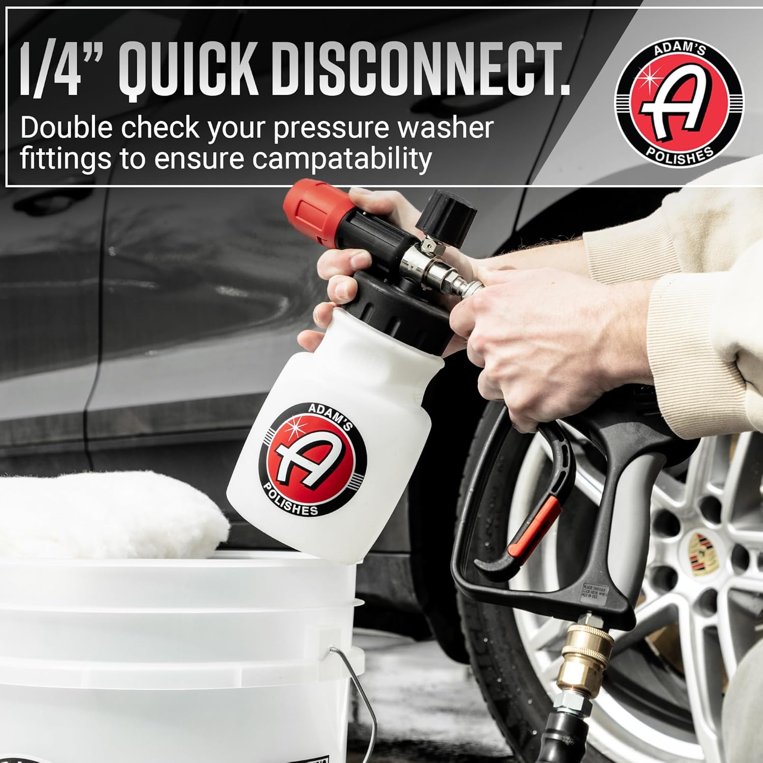 - β 110% SATISFACTION GUARANTEED - At Adam's, we're committed to providing the best car cleaning supplies and accessories on the market. If you're not satisfied with our Foam Cannon or any of our other products, let us know and we'll make it right! The Premium Foam Cannon requires a pressure washer for use.