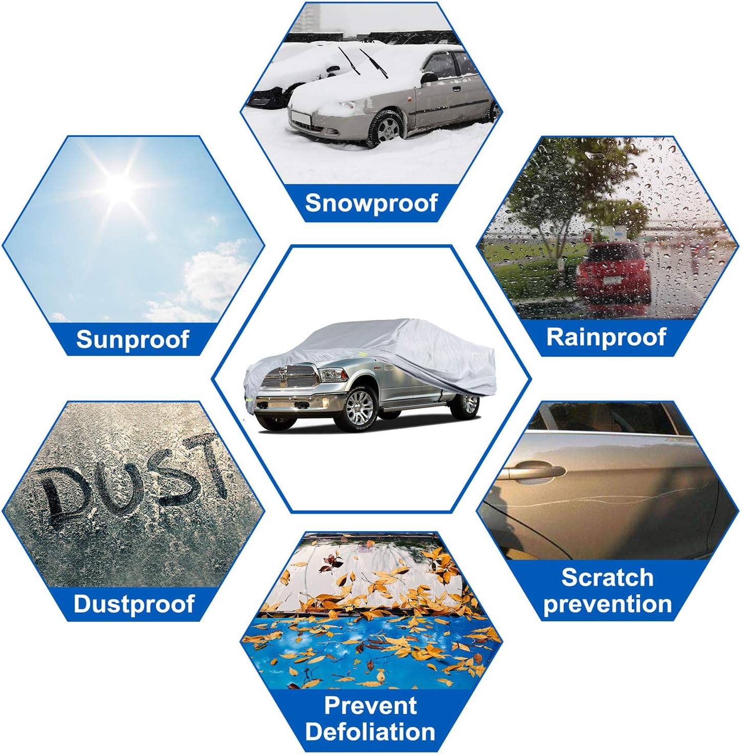 KouKou Truck Cover Waterproof All Weather, 6 Layers Full Pickup Outdoor Cover Length up to 232 inches,Universal Fit Toyota Tacoma, Chevy Silverado, GMC Sierra, Dodge Dakota etc.