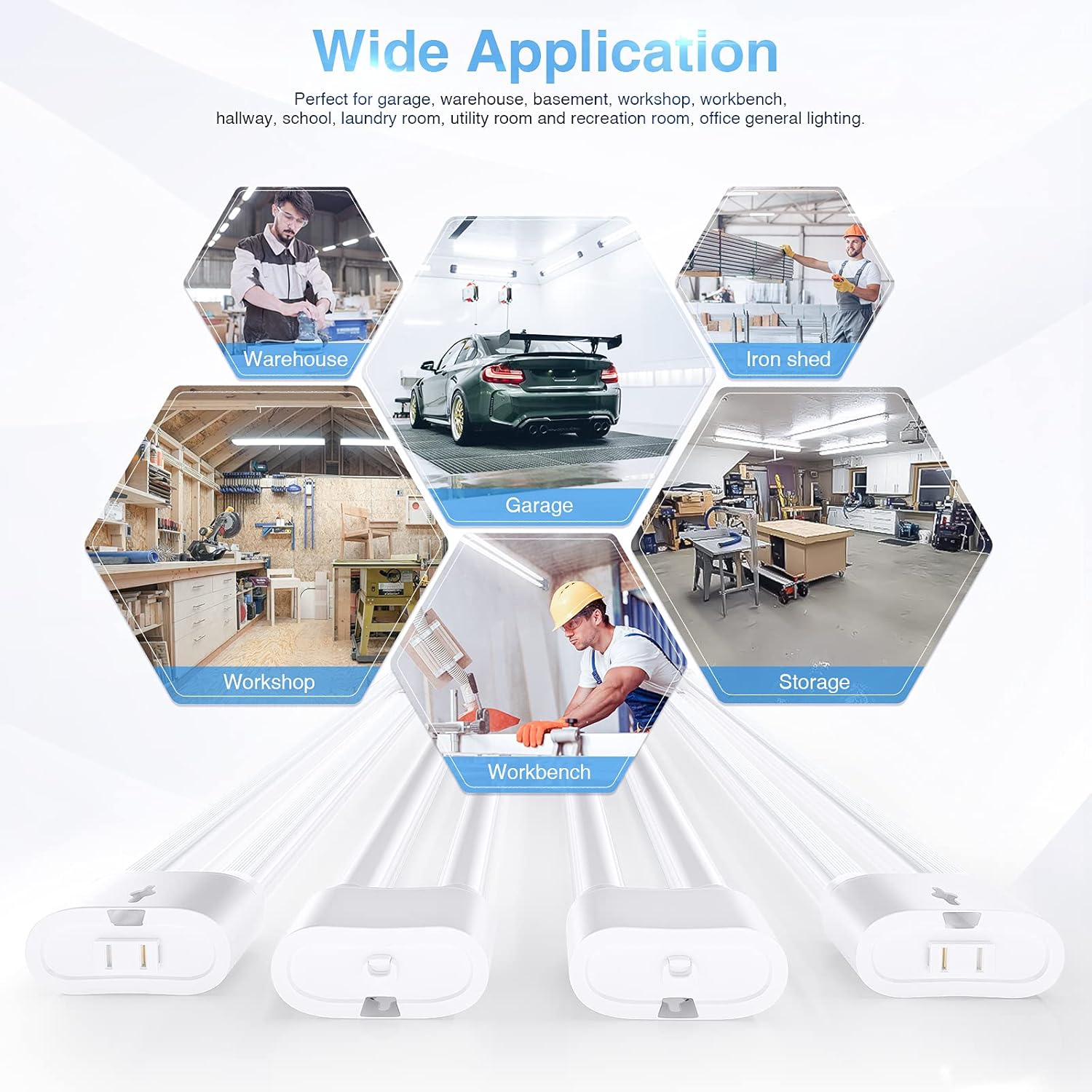 - đź’ˇ WIDE APPLICATION - Ideal for a variety of settings including garages, workshops, basements, and utility rooms, this versatile LED shop light meets all your lighting needs with exceptional performance and efficiency.