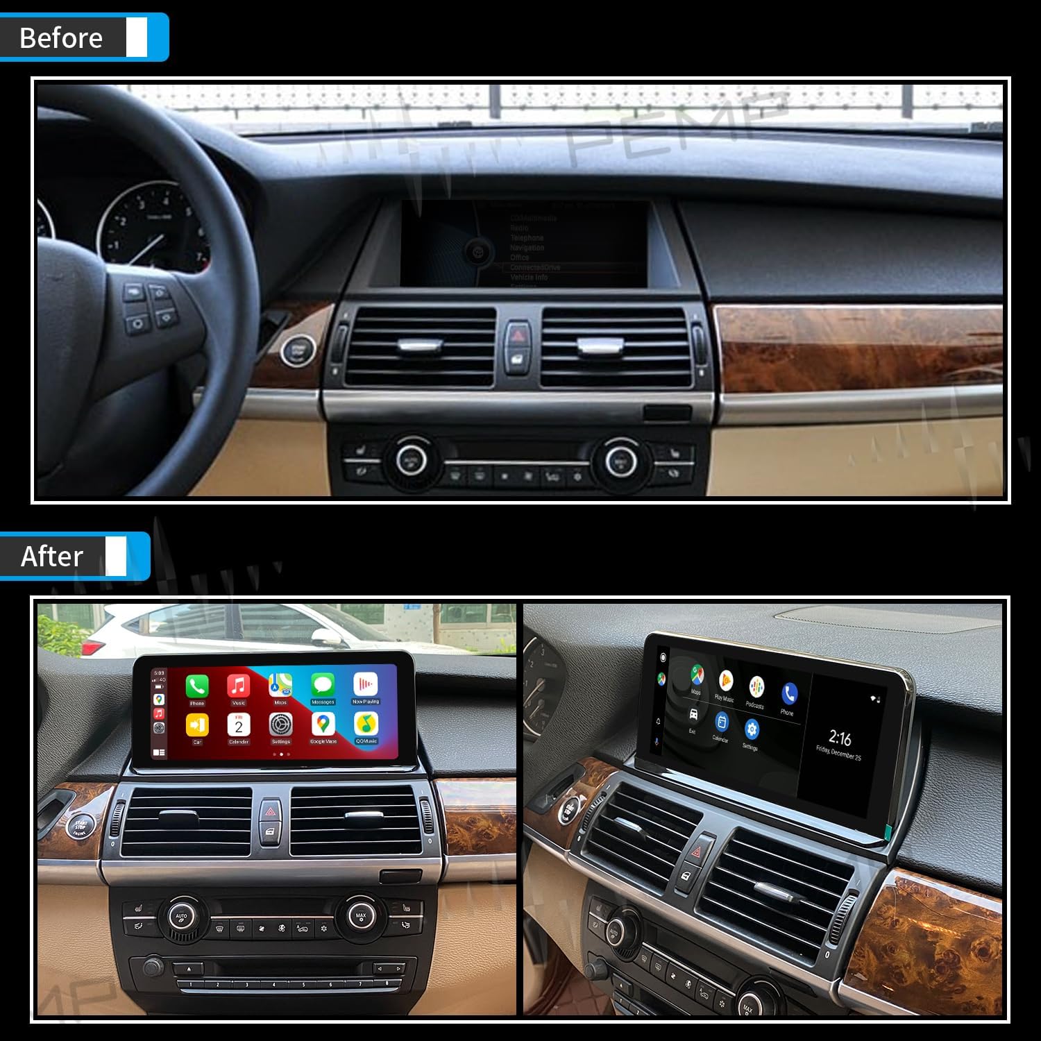 PEMP Linux Vertical Screen E70 E71 CIC Wired and Wireless CarPlay Retrofit Android Auto, 1920 x 720 Display Mirror Link Car Radio Bluetooth Video Player Screen for BMW X5 X6 (2010-2012)