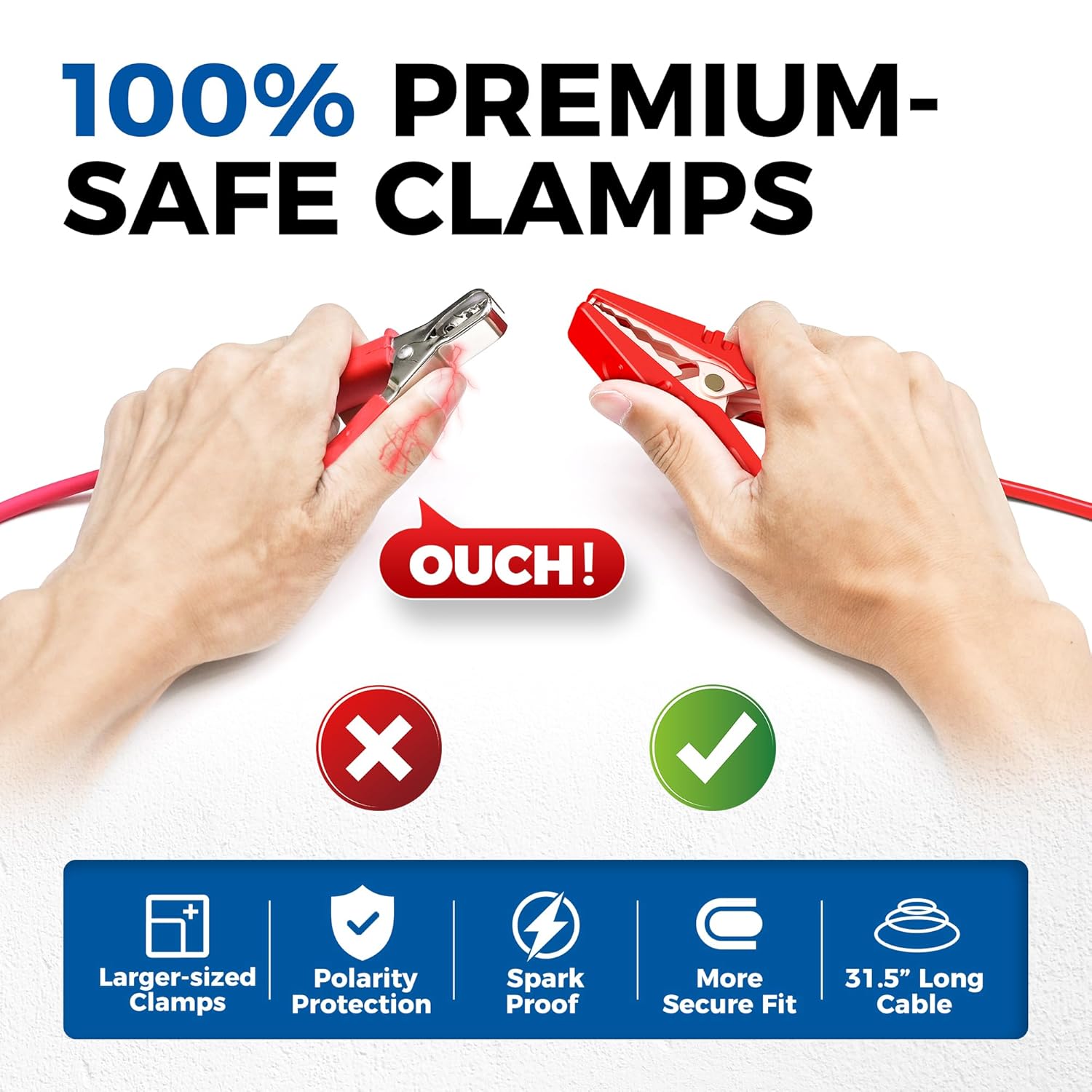 - [Extra-Safe Operation] With spark-free copper clamps, PVC-coated wiring, and built-in automatic protection against reverse polarity, the BT300P provides the extra safety you need when battery testing. Its insulated ABS shell prevents current leaks and can withstand damage. With an extra-long 31.5” cable, this car battery tester is even more convenient to use.