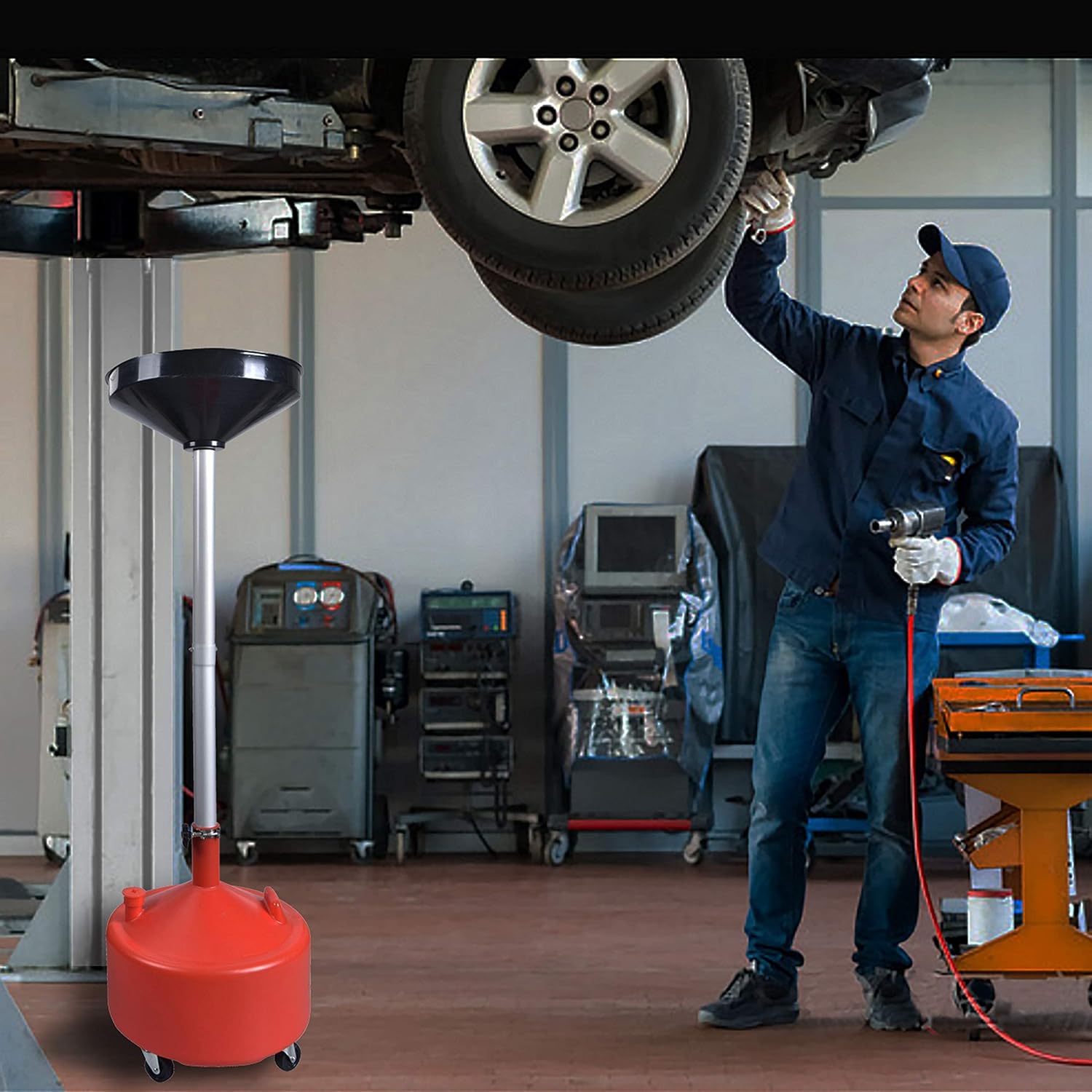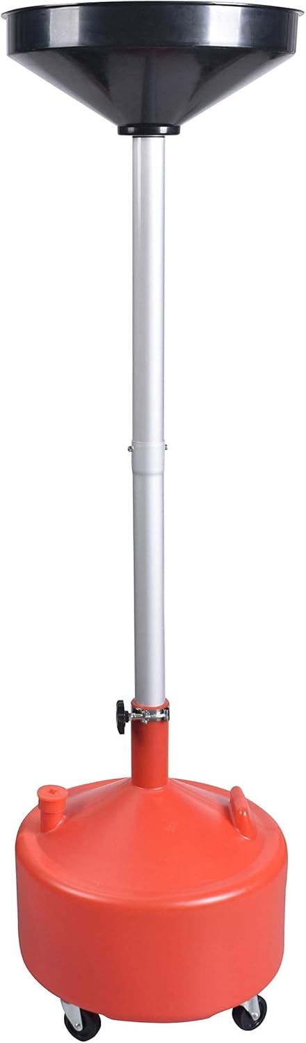 PONO 8 Gallon Portable Upright Oil Drain | Easily Recycle Automotive Waste Fluids | Adjustable Funnel Height | Use with Car Lifts | 16.5 Inch Funnel w/Built-in Strainer | Industrial Fluid Drain Tank