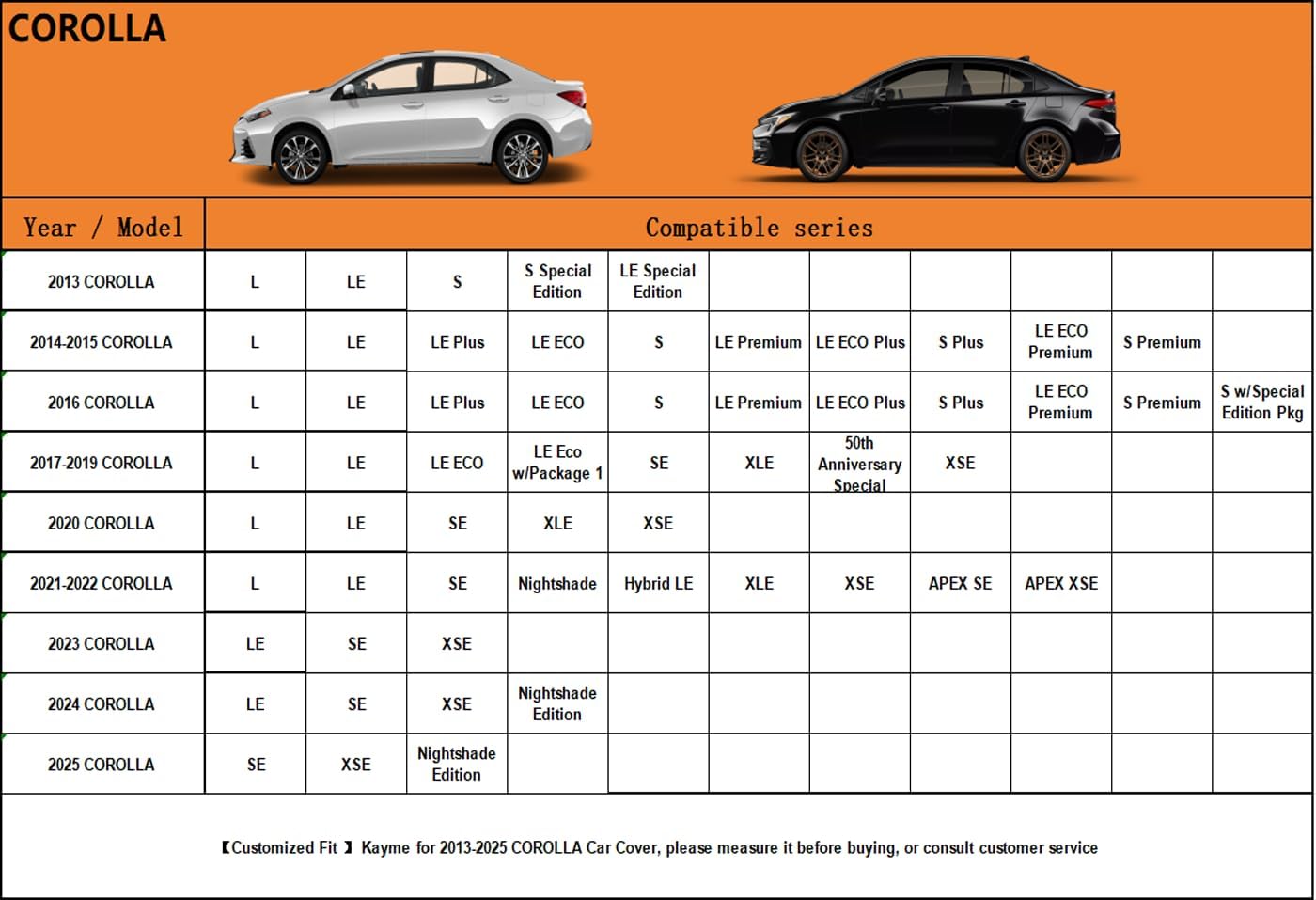 • 【Suitable for】— Custom fit for toyota corolla sedan(2000-2025)Come with a large enough portable bag to store your cover when you do not use.