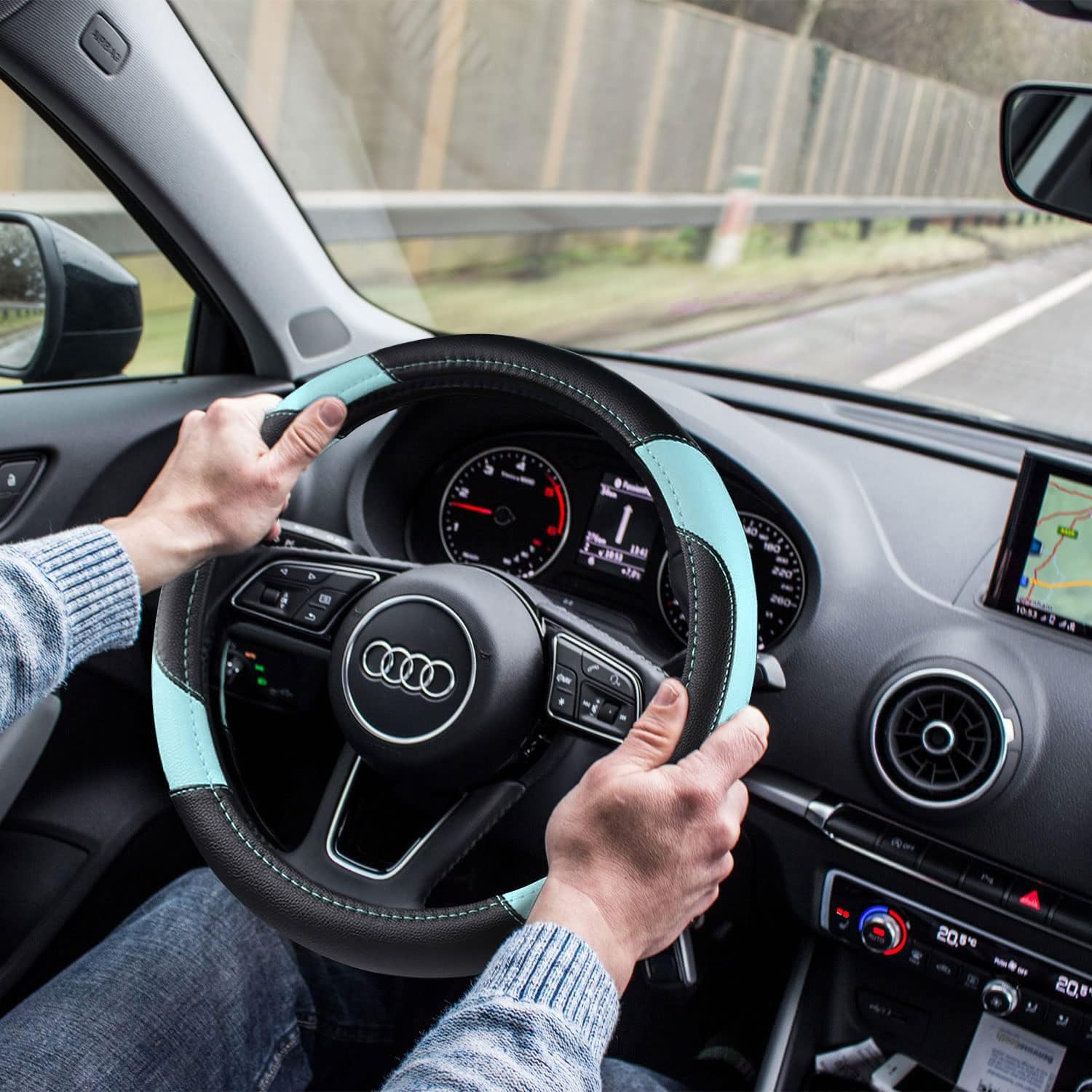 - 【Increased Safety】The steering wheel cover can protect your hands from getting sweaty with a comfortable touch. The soft inner side of the cover can protect your steering wheel from scratches. Now you can hold the wheels better and control the road accurately for increased safety.