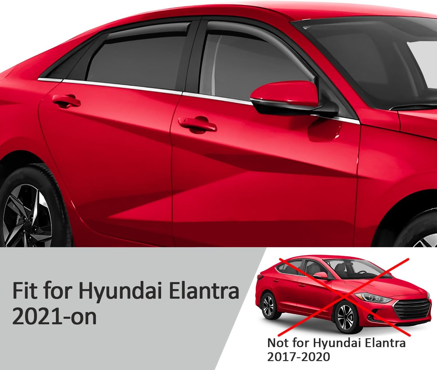Voron Glass in-Channel Extra Durable Rain Guards for Hyundai Elantra 2021-2025, Window Deflectors, Vent Window Visors, 4 Pieces - 220225