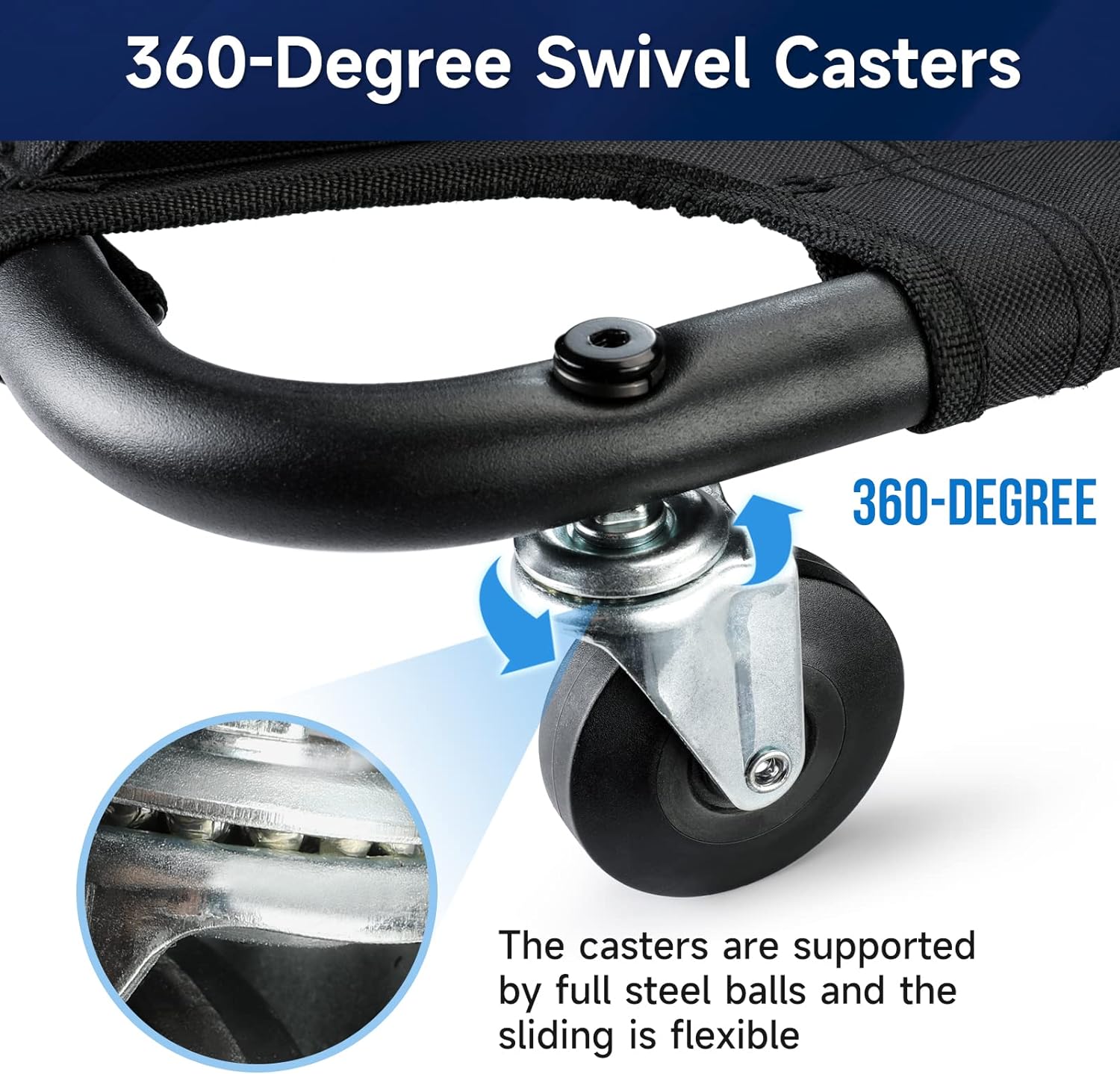 - Flexible Caster Wheels: Four 2.5inch swivel caster wheels supported by full steel balls, which deliver smooth and precise movements, more durable.