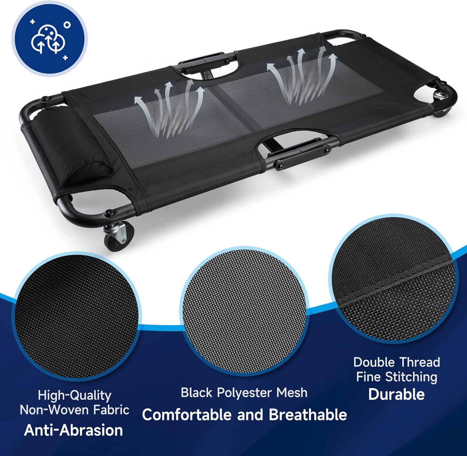 - Breathable Mesh Design: This creeper features breathable polyester mesh,which is more flexible and softer than traditional plastic creeper, provides more comfortable in narrow environments and suits for pro-longed working.