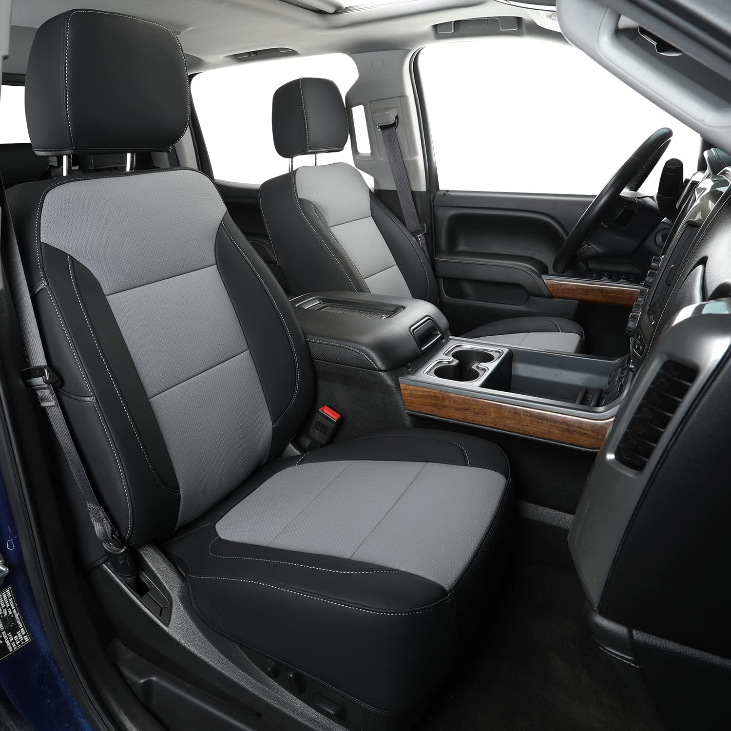 LUCKYMAN CLUB Custom Fit Seat Covers for 2019-2024 2025 Chevy Silverado Sierra 1500 Crew Cab, 2020-2024 2025 Silverado Sierra 2500 3500 Crew Cab (Black&Gray)