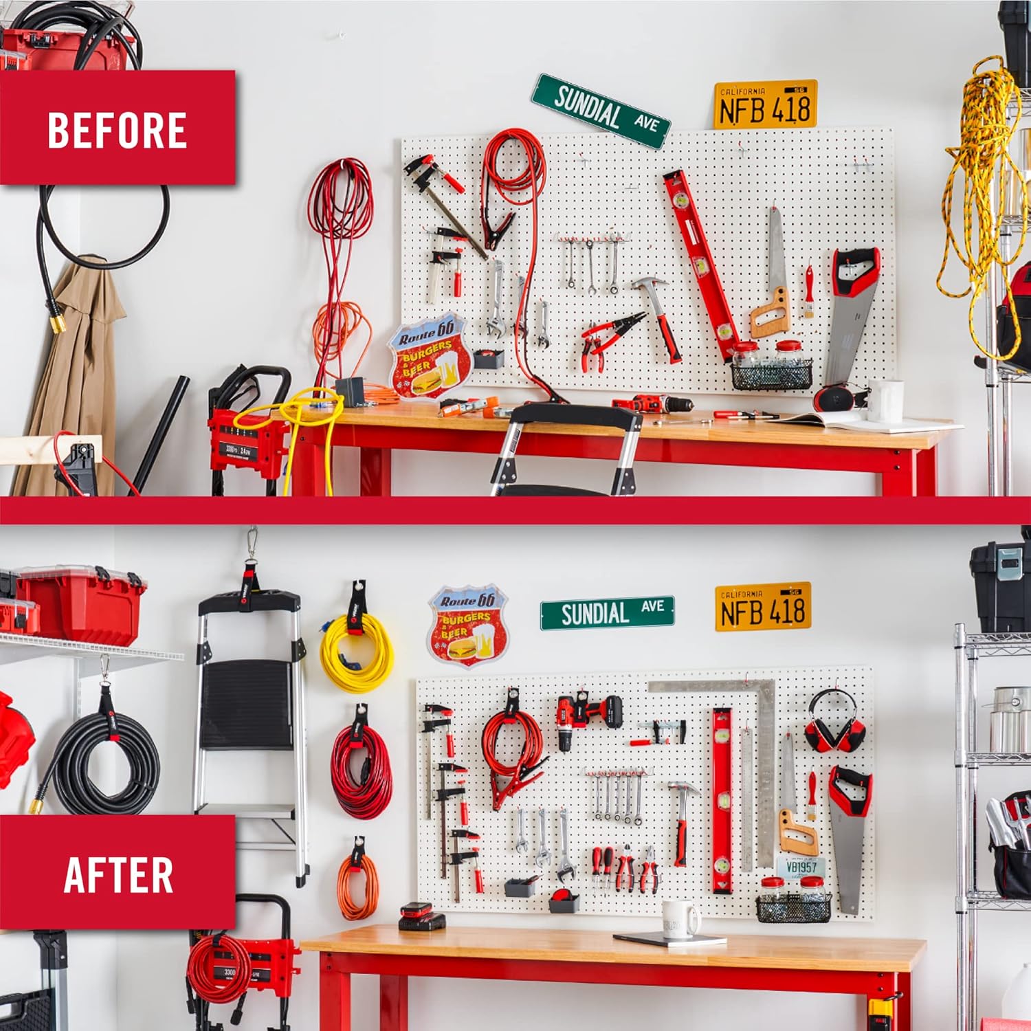 - MAKE GARAGE STORAGE SIMPLE: Easy-open red pull tags make them easy to use; lighter and simpler than an extension cord reel, easy storage for garage