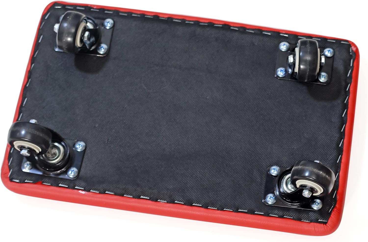 Roller Seat 360 Degree Rotating Low Stool with Wheel Chair PU Leather Universal Swivel Wheels Stool for Home Office Fitness and Garage (Rectangle Red)