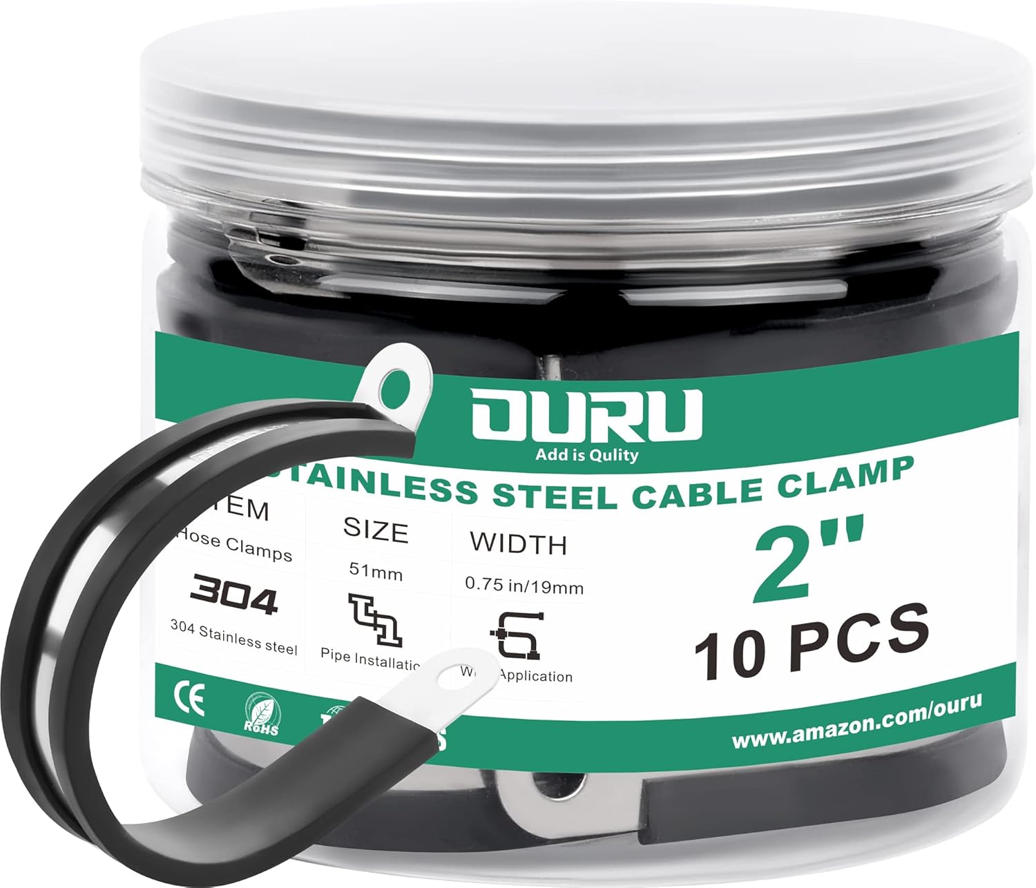 - OURU Insulated Cable Clamps Kit โThe stainless steel hose cable clamps box set contains 10pcs 2" p-clamps.Fit for 6M( 1/4 inch) screw bolt to through the screw hole