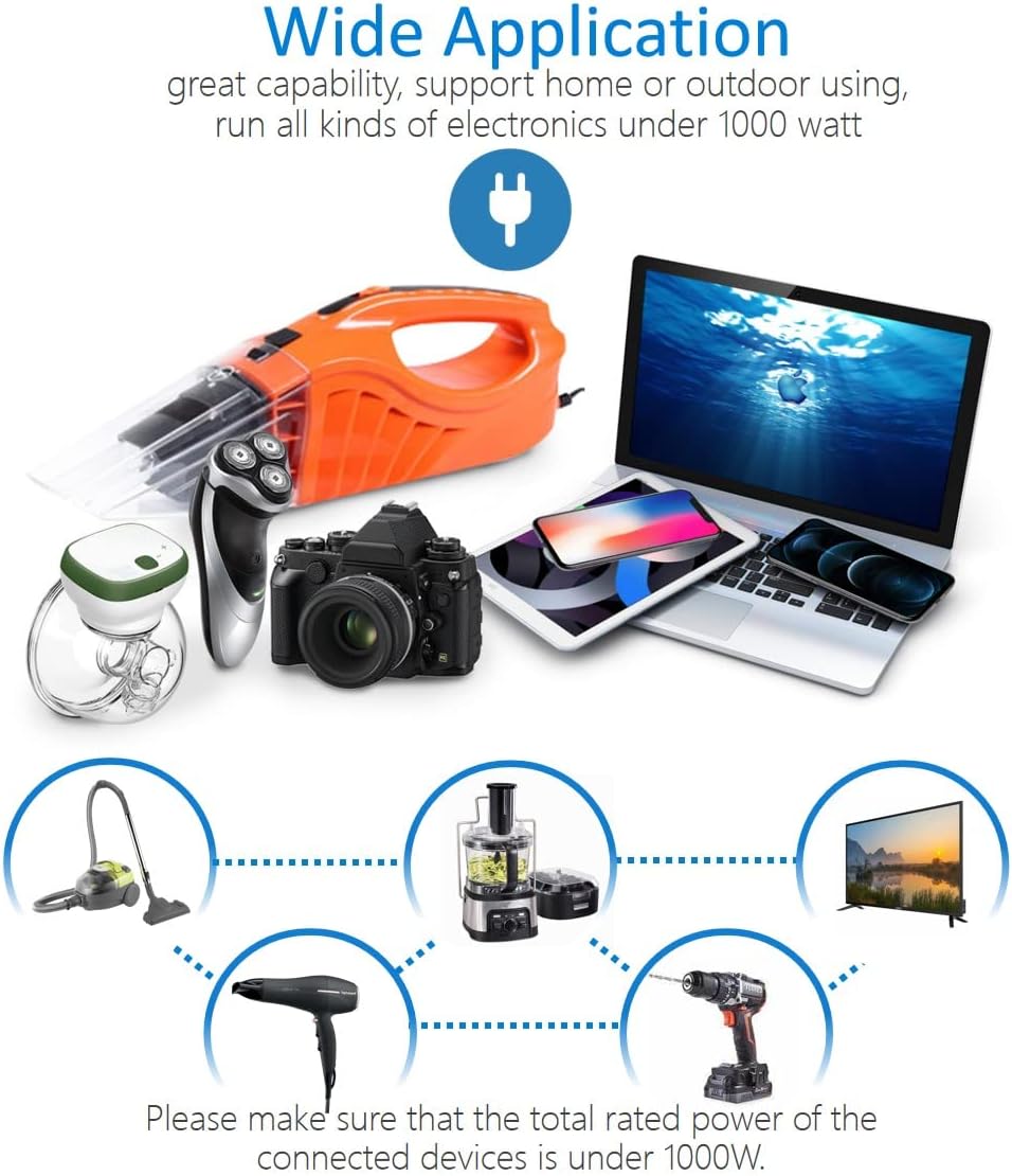 - ππ·ππππππ πππ π½ππππππ π¨πππππππππππ: Whether you are camping, going on a road trip, or simply need a power supply for your RV or truck, this 12V to 110V inverter is perfect for you. its powerful 1000W continuous output power and 2000W peak surge make it suitable for a wide range of applications. The pure sine wave with 90% conversion efficiency greatly reduces conversion loss.