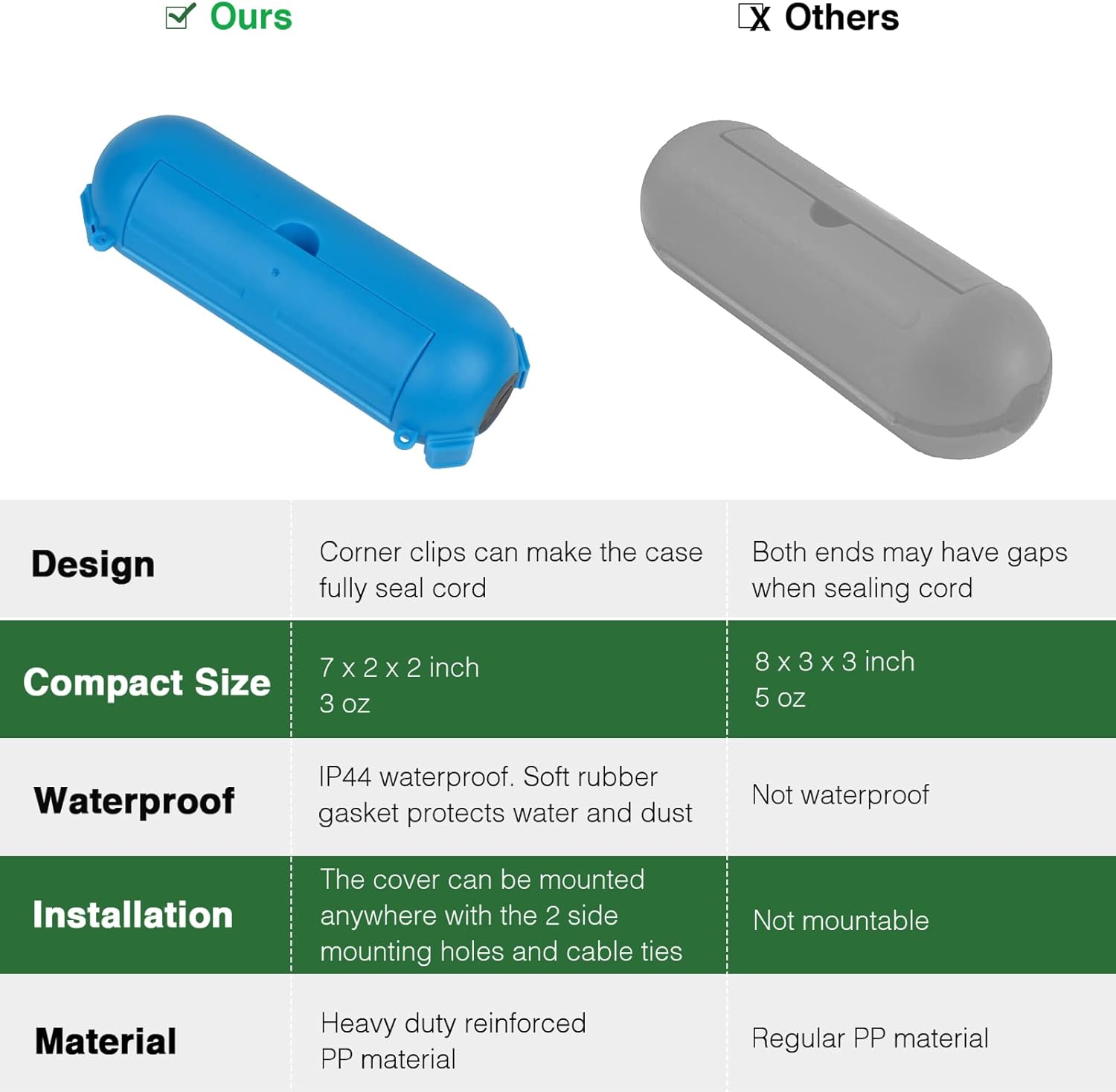 - With the 4 corner clips, snap-lock lid, and rubber gaskets, this outdoor extension cord cover box is IP44 waterproof. Perfect to seal 14/16/18 gauge cord, braided cable and flat wire.