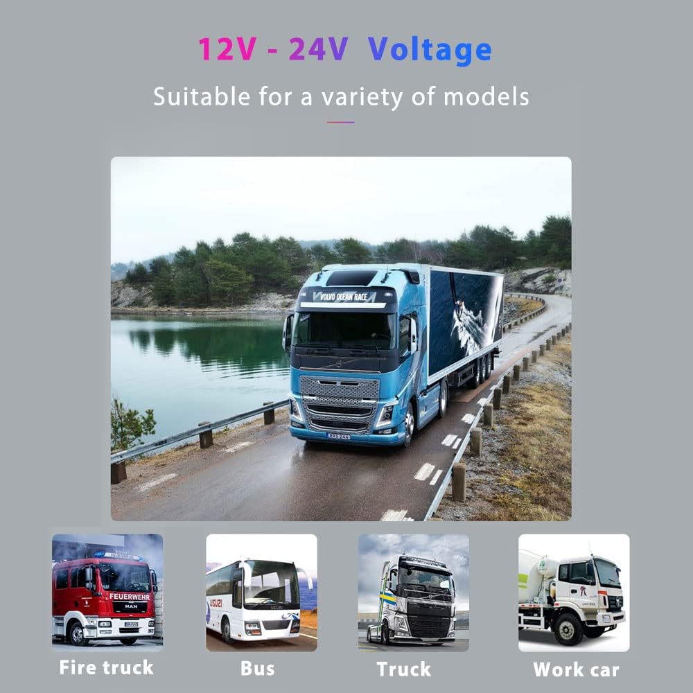 - 【Wide Comatability】Voltage Range From 12-24V DC Power to Accomodate a Wide Variety of Large Vehicle as Truck, Bus, RV, Tractor, Car and ect