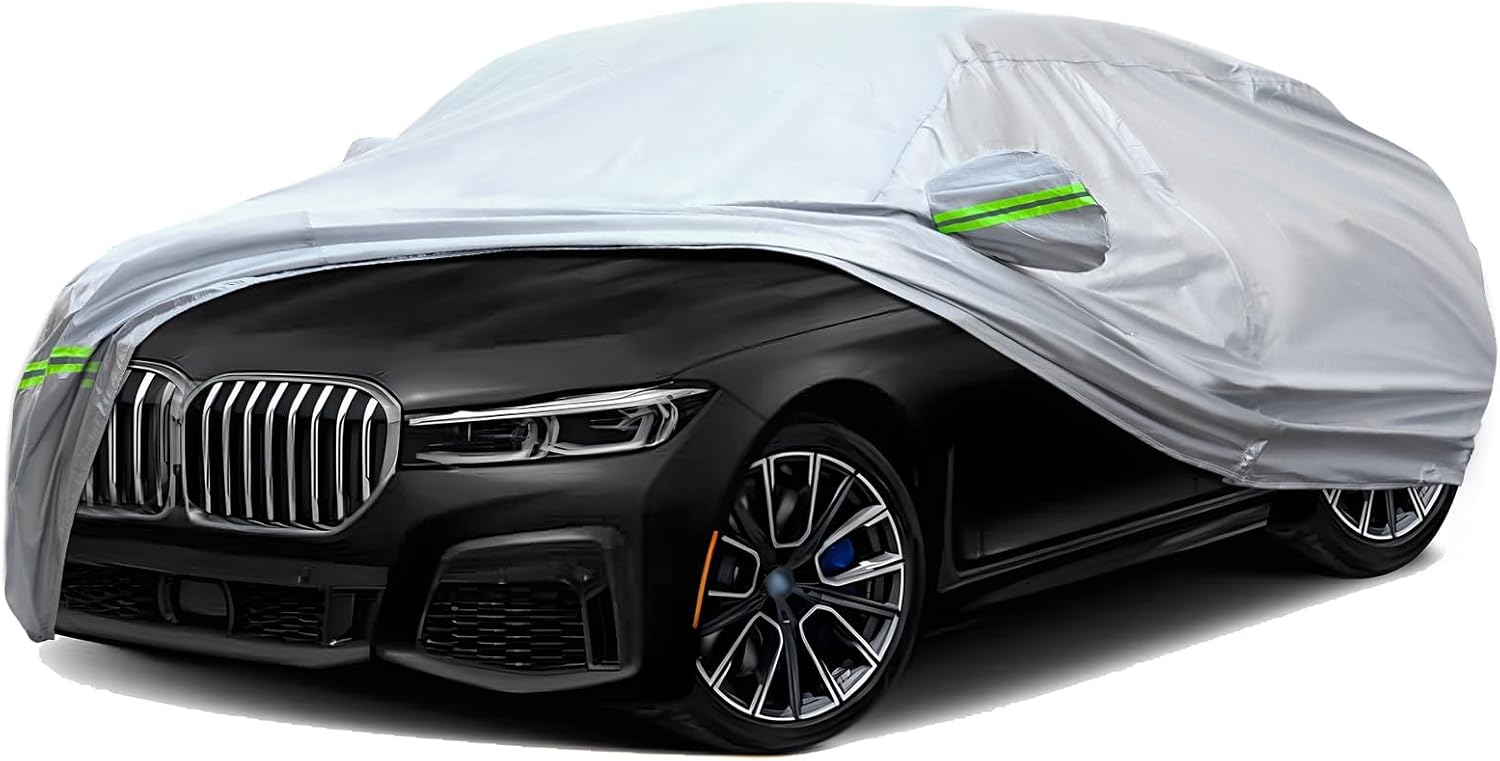 - ❖【USING HIGH QUALITY MATERIAL】- TUCAREST Uses 6 Layers of High Quality Material to Make High Density Aluminum Film Spunlace Cotton Oxford Cloth Full Car Cover, Which is More Durable. ① The Interior is Made of High-density Spunlace Cotton, Which is Softer, Will Not Retain Sand Particles, and Will Not Hurt the Paint. ② External High Reflective Aluminum, with Strong Sunscreen and Anti-ultraviolet Function, Keep the Car Cool. ③ 100% Waterproof and Impermeable, Perfect for Rain, Snow and Acid Rain.