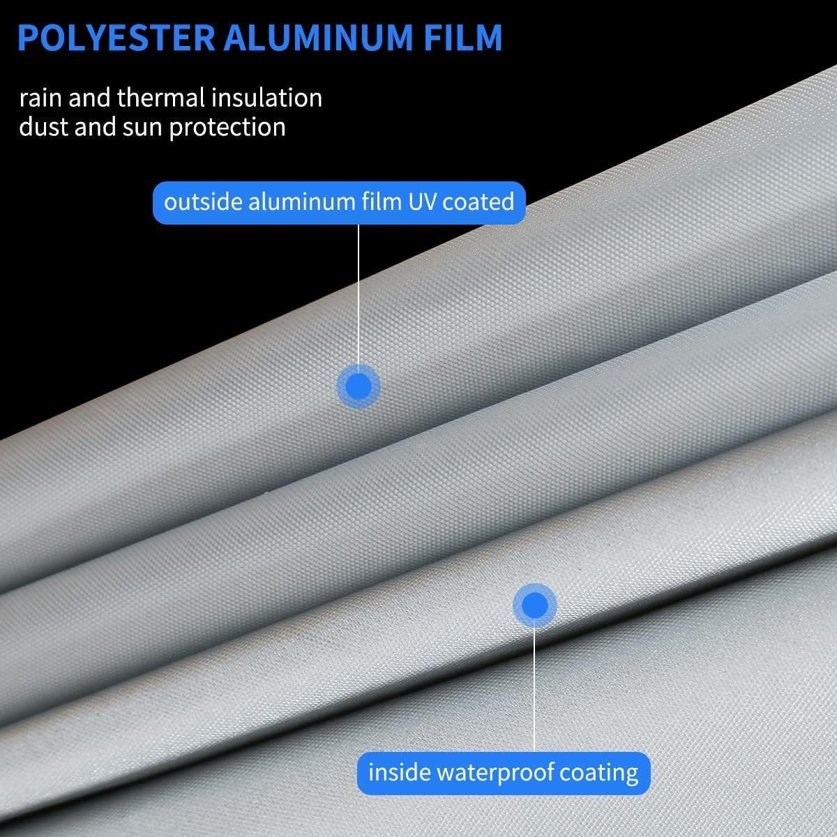 - Wonderful Material: 【1】Made of upgrade high-density Polyester 300D polyester, lightweight material for easy to install alone. 【2】Waterproof and heat insulation, air permeable and fast drying.【3】The maximum tensile strength up to 20 MP, durable enough to protect your car. 【4】Tecoom multi-layer material are much more durable than other similar full exterior covers.