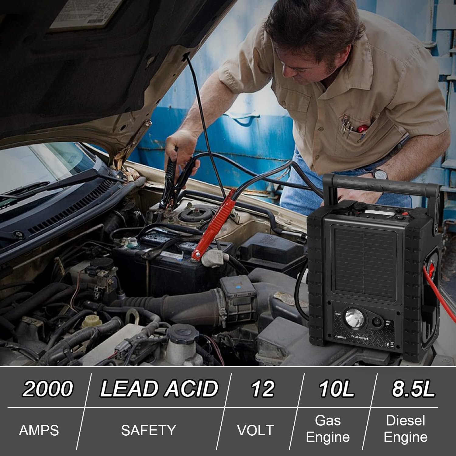 2000A Peak Car Battery Jump Starter with Air Compressor Tire Inflator, All in One Heavy Duty 12V Battery Jumper Box Car Start Booster Up to 10L Gas/8L Diesel Engines with 400W AC Inverter, LED Light