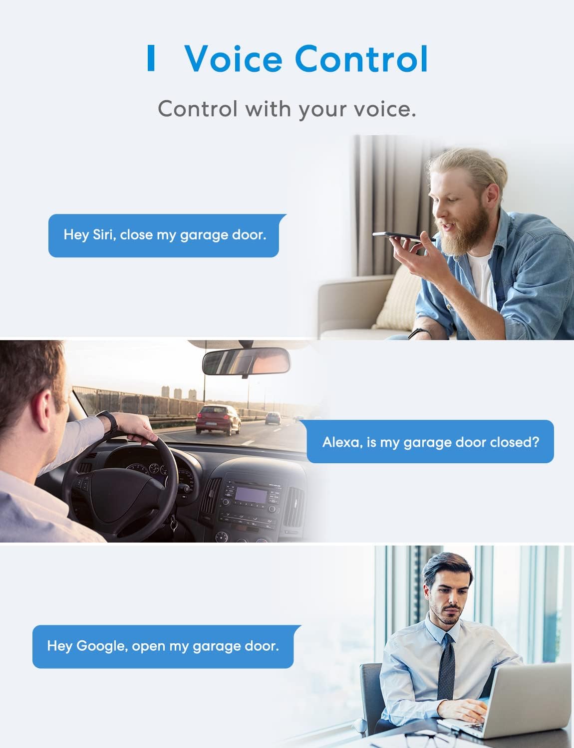 Smart Garage Door Opener Remote with External Antenna, Up to 3 Single Doors, Compatible with Apple HomeKit, Amazon Alexa,SmartThings, Google Assistant