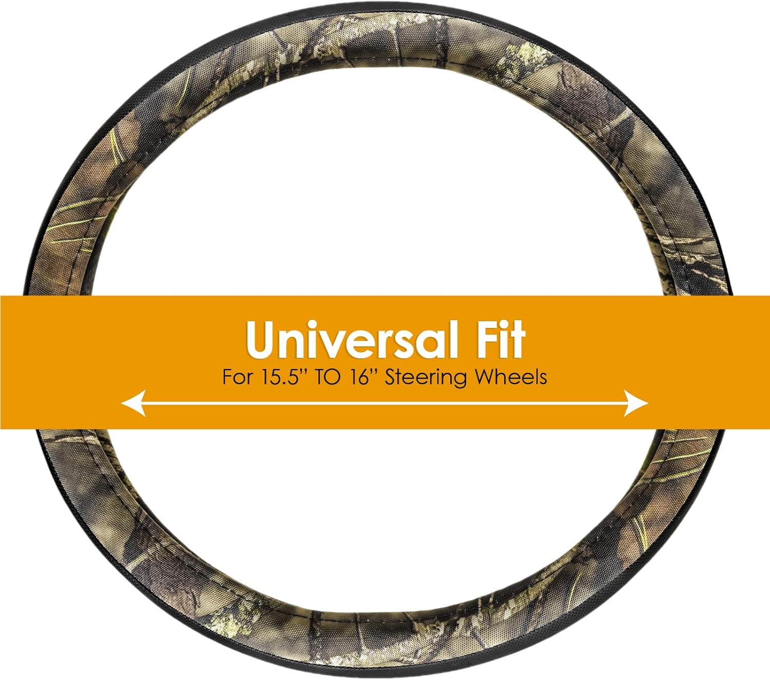 Mossy Oak Steering Wheel Cover by LPI Truck; Heavy Duty 600D Oxford Material with Mossy Oak Break-up Country Camoflauge Design; Fits All Large Trucks and SUVs with Steering Wheel Size 15.5" to 16"