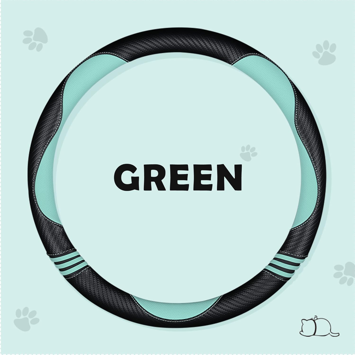 Car Steering Wheel Covers for Women Girl Padded Carbon Fiber PU Leather Cute Cartoon Auto Interior Accessories for Jeep, Truck, Universal, Anti Slip, Green, Large Size 15.5-16"(39-41cm)