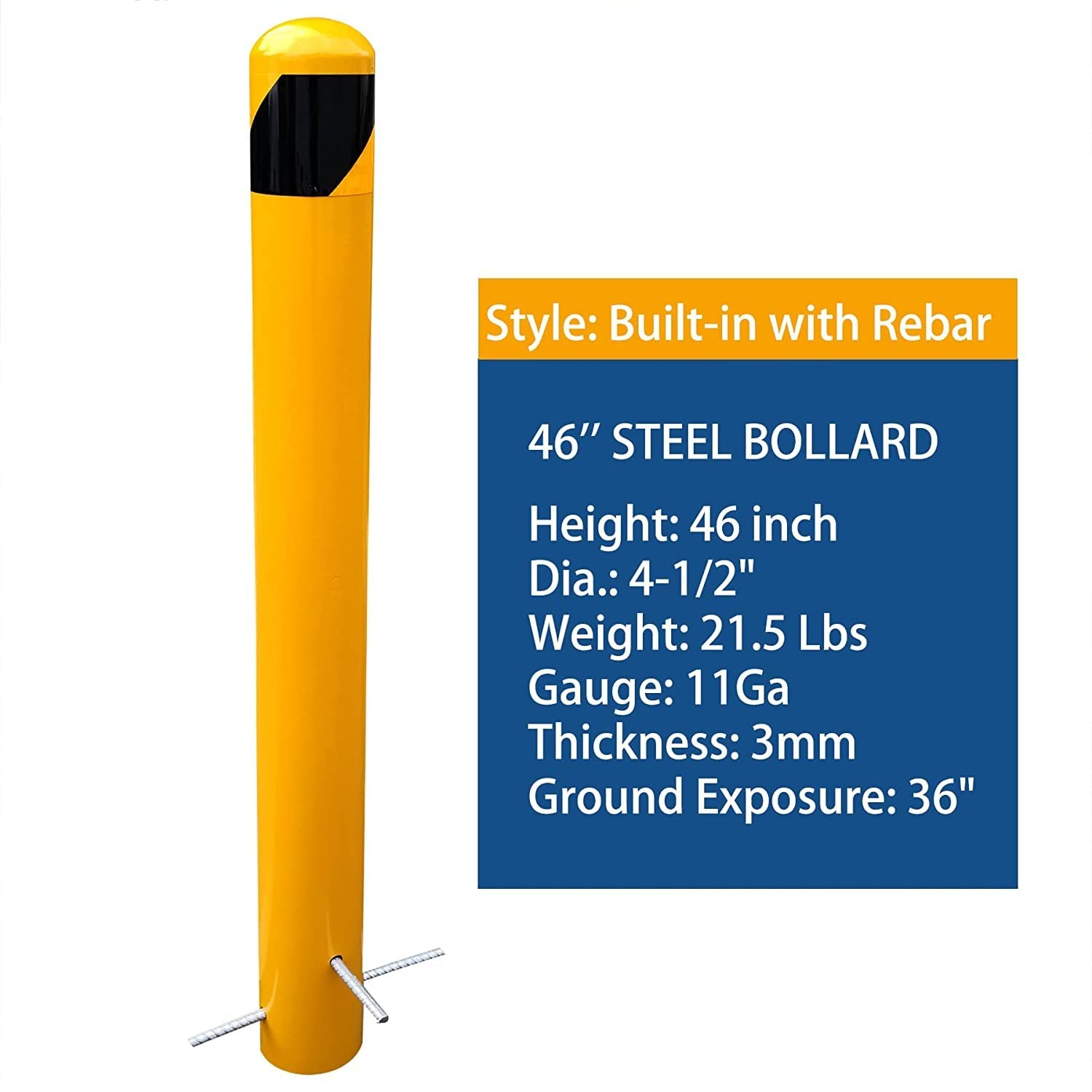 - Q235B HEAVY DUTY BOLLARDS: Made of 3.0mm/ 11 Ga whole steel, the security bollard post weigh 21+lbs with good resistance to impact and damage and physically protect valuable equipment and merchandise at entrances, parking lots, warehouse, sidewalks, bike paths, etc.;