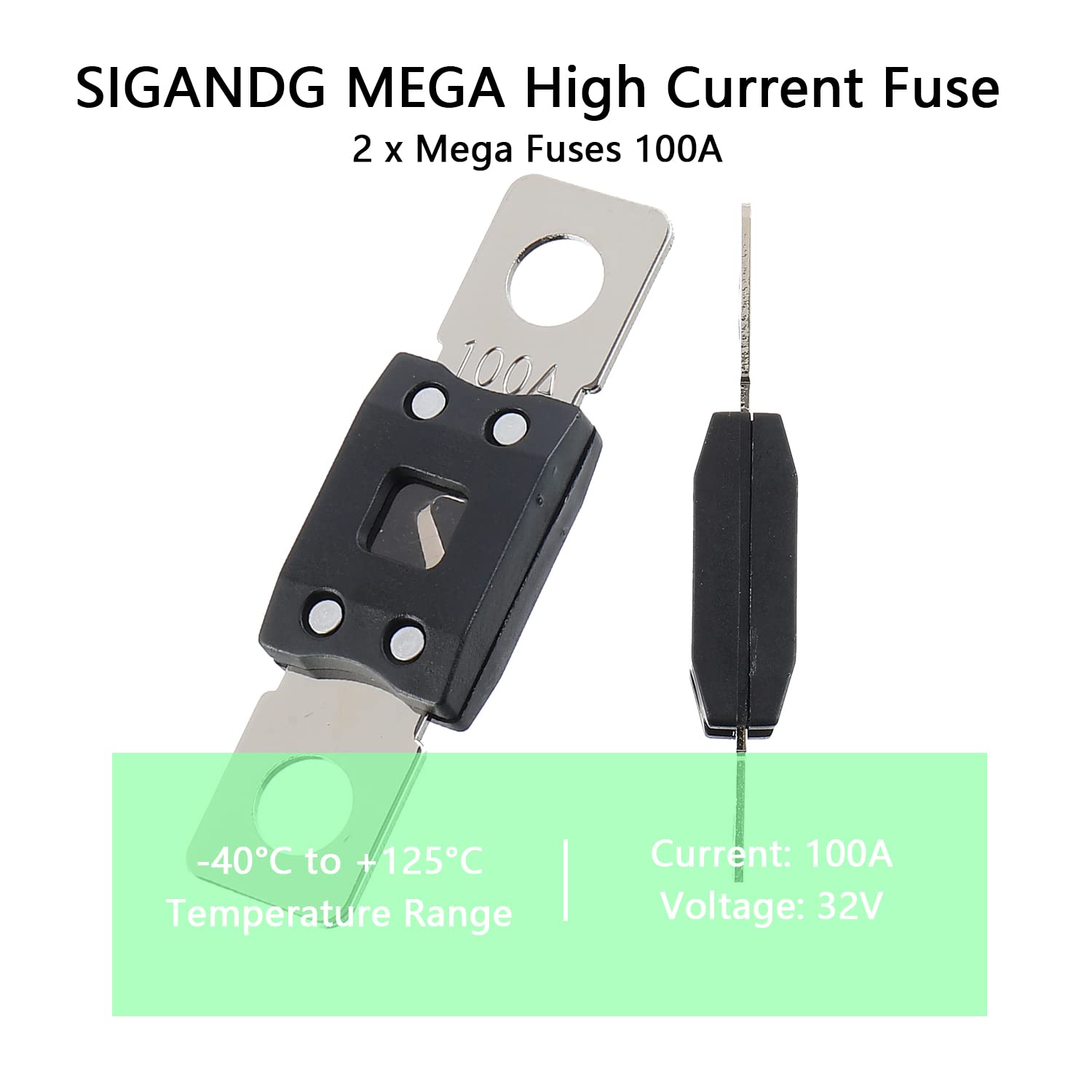 100A MEGA High Current Fuse - 100 Amp Bolt-on Fuse for Cars, Trucks, Construction Vehicles, Buses, Caravans (2 Pcs)