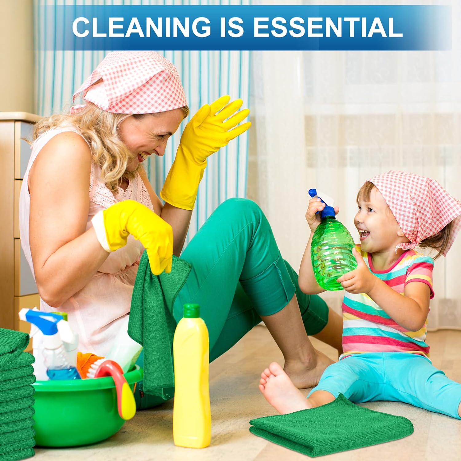 Tenare 100 Pack 12'' x 12'' Microfiber Cleaning Cloths Reusable Cleaning Rags Bulk Microfiber Towels Softer Highly Absorbent Washcloths for House Kitchen Car Window(Green)