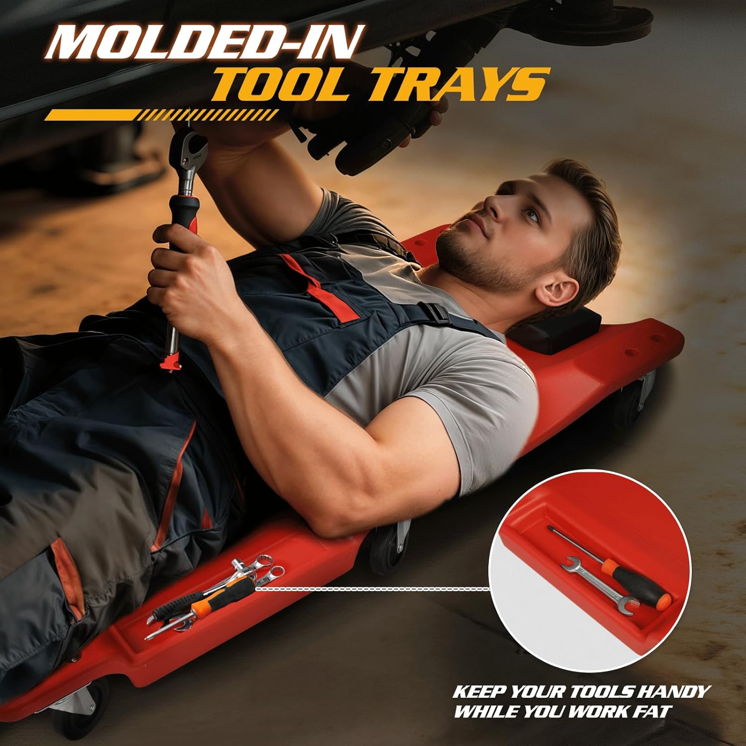 - Portable and Easy to Store: Designed with built-in carrying handles, this creeper is easy to pick up and transport. Its low-profile design allows for compact storage, making it ideal for both professional garages and home workshops.
