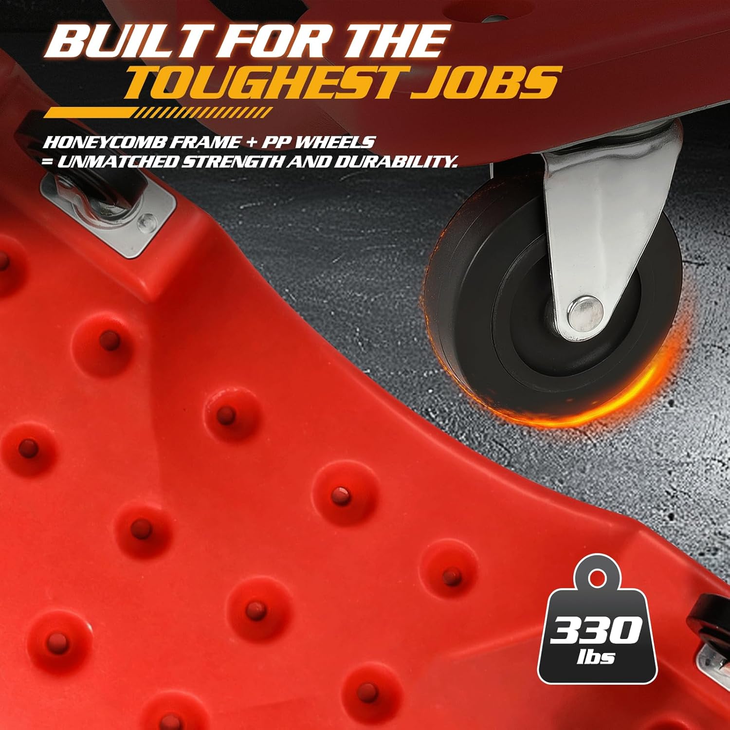 - Durable and Lightweight Construction: Made from high-strength impact-resistant plastic, this garage creeper supports up to 330 lbs while remaining lightweight at just 11 lbs for easy portability.