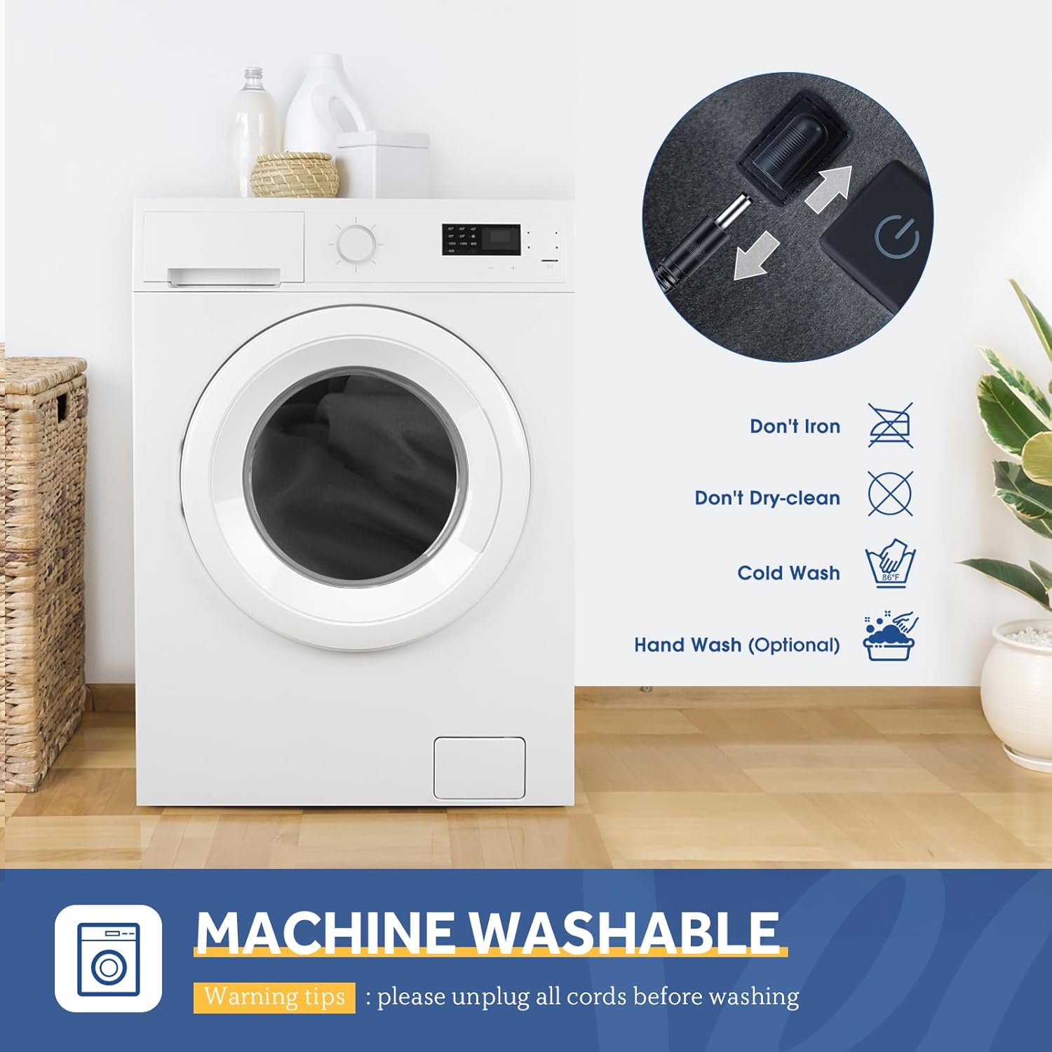 - 【Machine Washable】Electric car blanket with silicone switch on blanket. The car heating blanket can be washed in the washing machine and then dried at low temperature. Please disconnect the controller and power cable before washing, please remember DO NOT dry clean, DO NOT bleach, and don't use it if wet. Please read the user manual carefully.