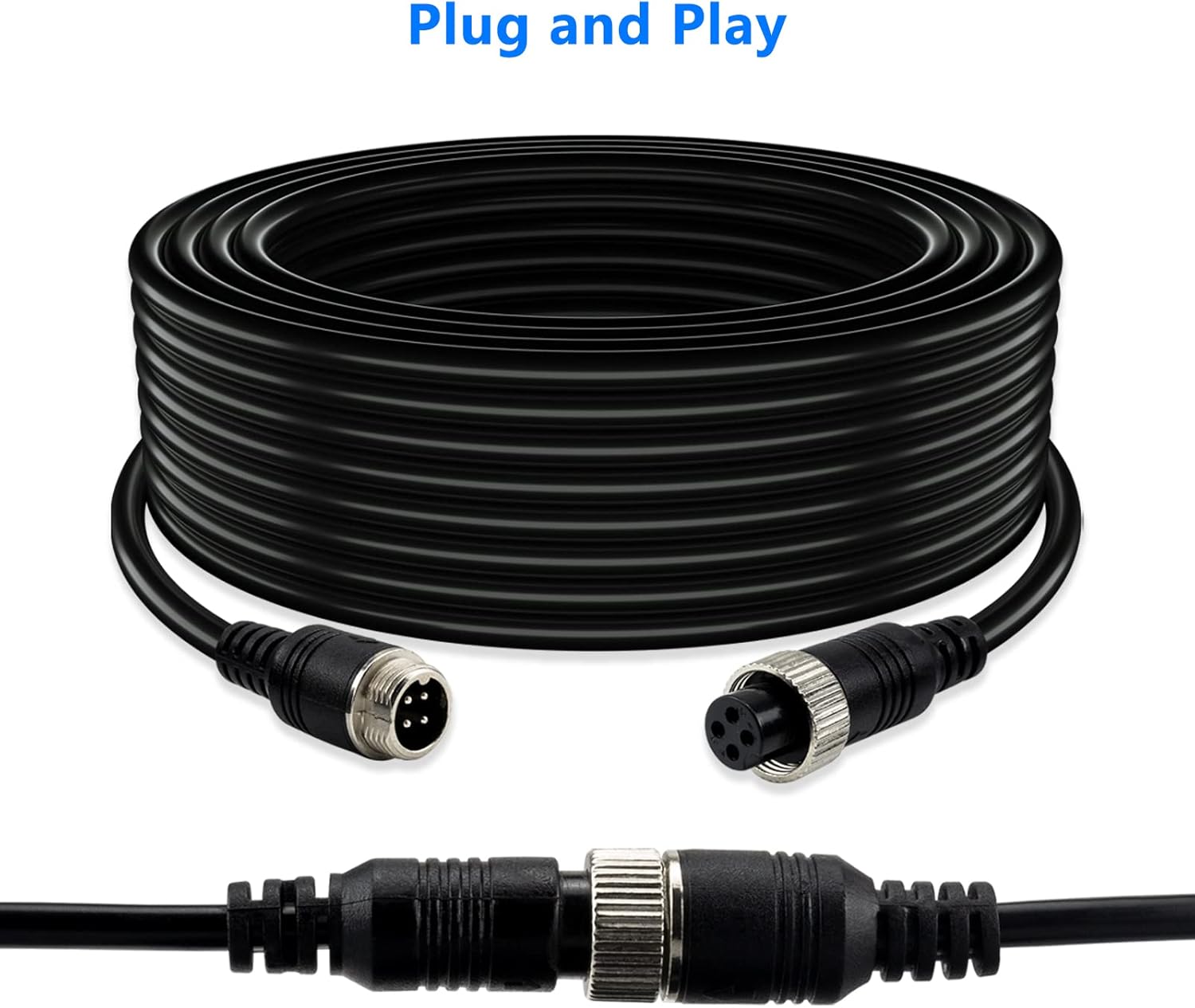 Car Video 4-Pin Aviation Extension Cable for CCTV Rearview Camera Truck Trailer Camper Bus Vehicle Backup Monitor System-65.6Ft/20M