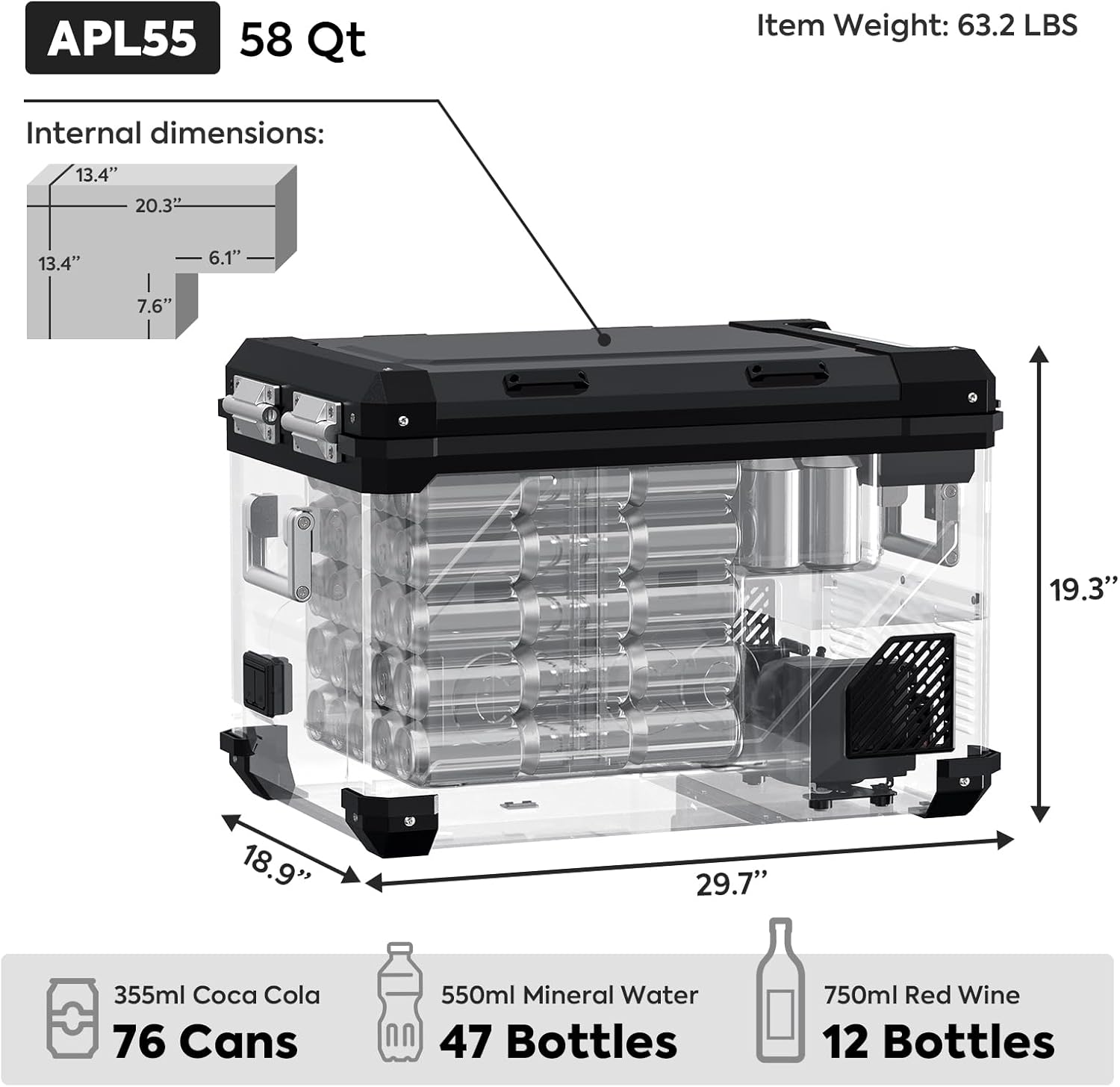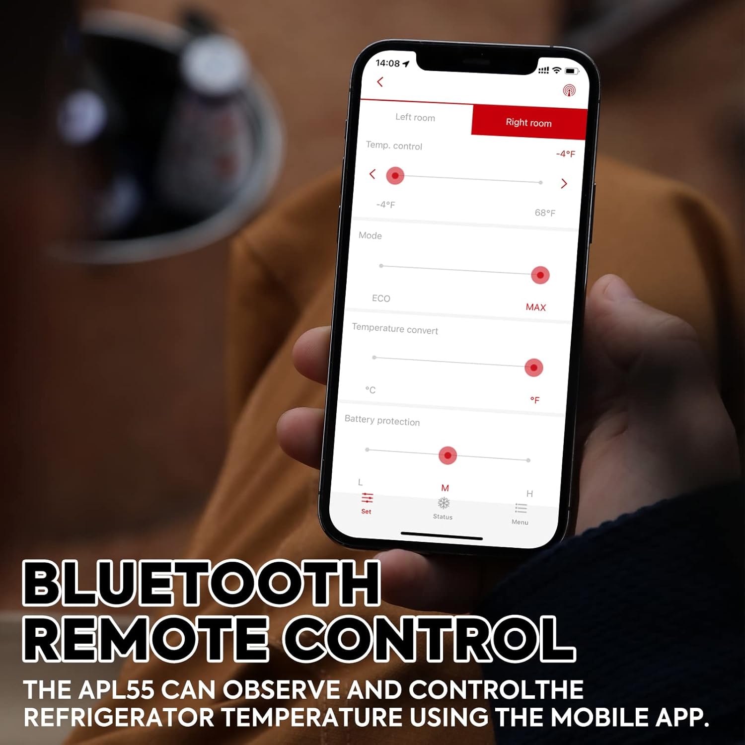 - [Advanced Technology] APL55 portable refrigerator can be temperature controlled via mobile app. The refrigerator alarm ring when the lid is left open or an error code occurs.