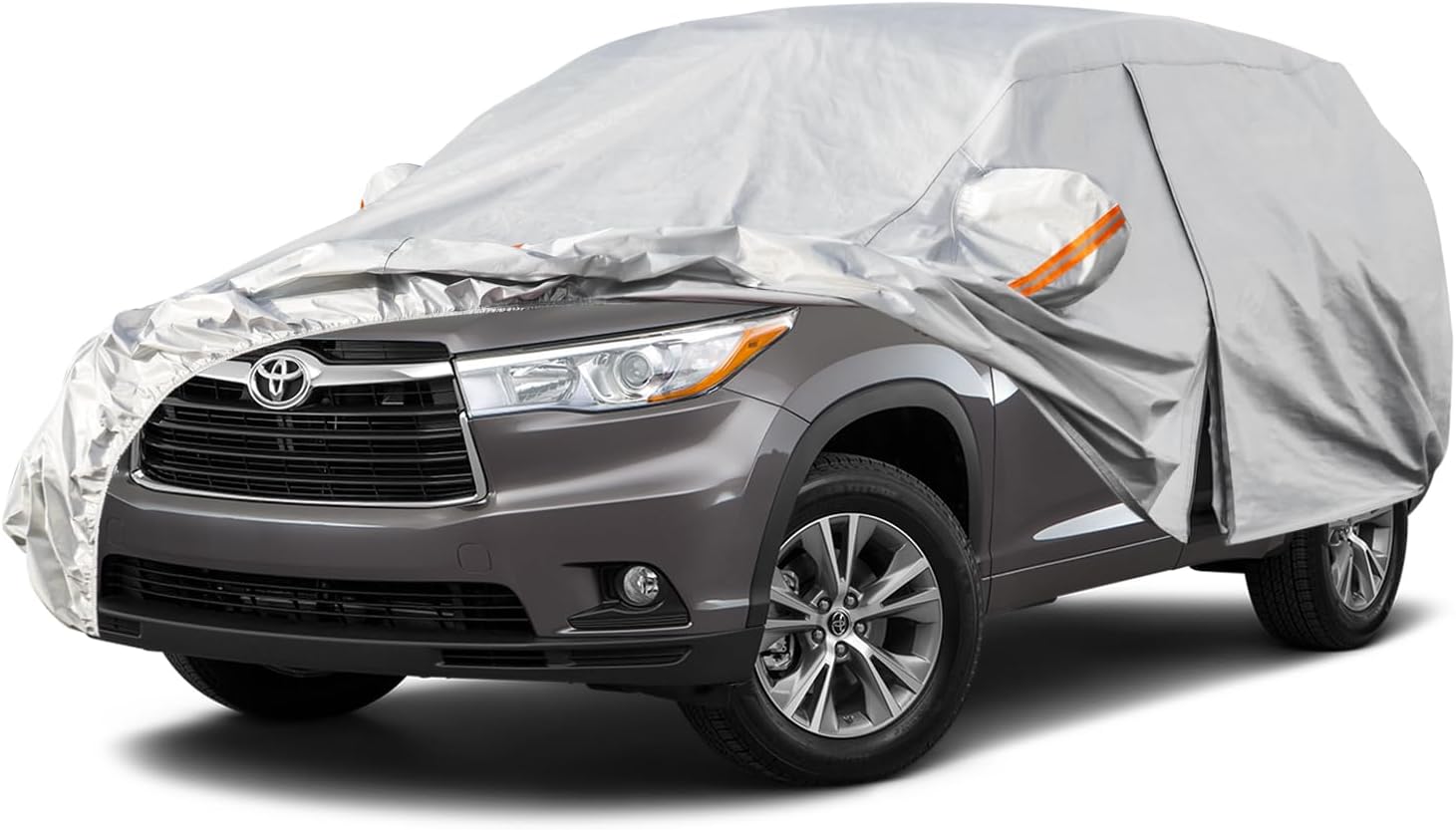 Kayme 6 Layers SUV Car Cover Custom Fit for Toyota Highlander (2007-2025) Waterproof All Weather for Automobiles, Outdoor Full Cover Rain Sun UV Protection.Silver