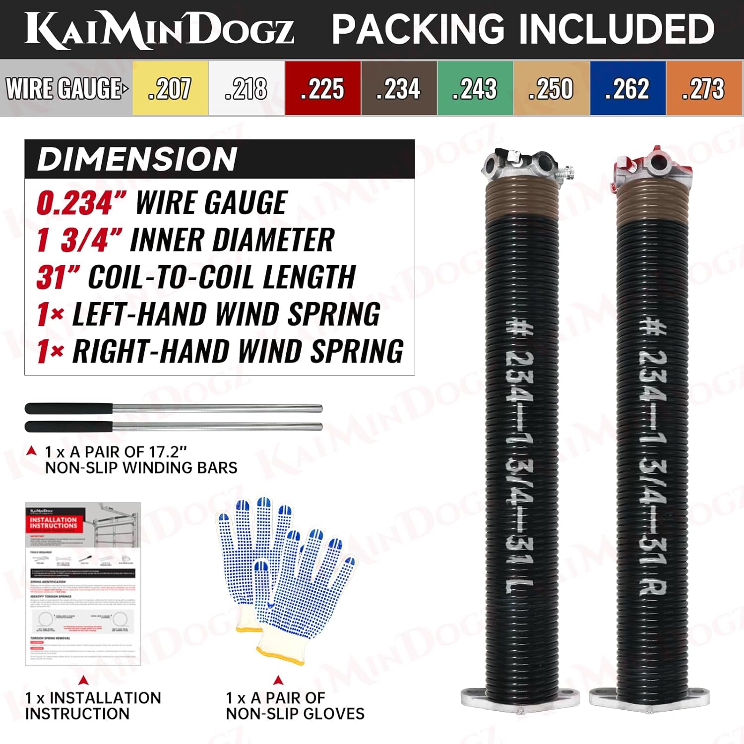 - SIMPLE INSTALLATION : Use KaiMinDogz high quality garage door torsion springs to replace old broken garage door springs.Having the experience of installing torsion springs can save you a lot of money.