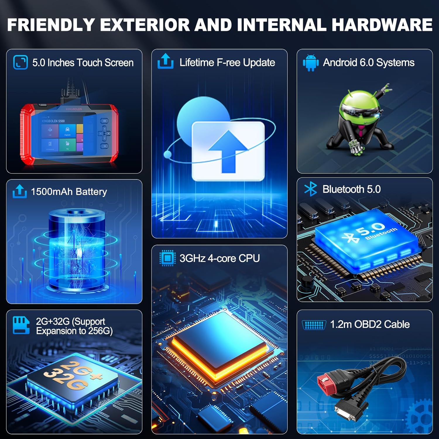 - 🚗 【5-Inch Touch Screen and 2+32GB BIGGER memory】KINGBOLEN S800 diagnostic tool is equipped with 5’’ gorilla glass touch screen. Compared with other brand scan tools, S800 code reader is more wear-resistant and scratch-resistant. Comes with 2GB ROM to ensure the software runs fast, and 32GB internal memory offers enough space to download more car modules and newest Reset. The S800 is NOT apply to all car models, if you are confused, please send your Car Brand, Model and Year to seller to check