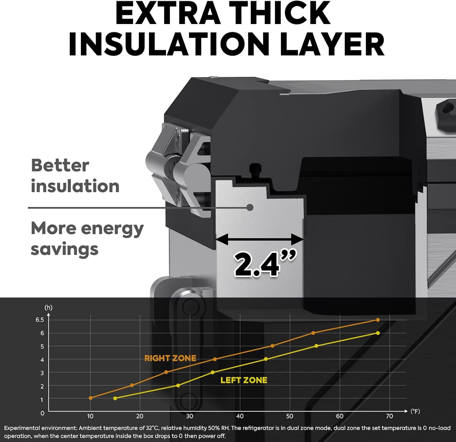 - Flexible Dual Zone Design - APL55 dual zone fridge add removable divider design that allows automatic switching between single and dual zone mode by removing the partition, providing 2 separate zones for refrigeration and freezing with 2 independent digital controller.