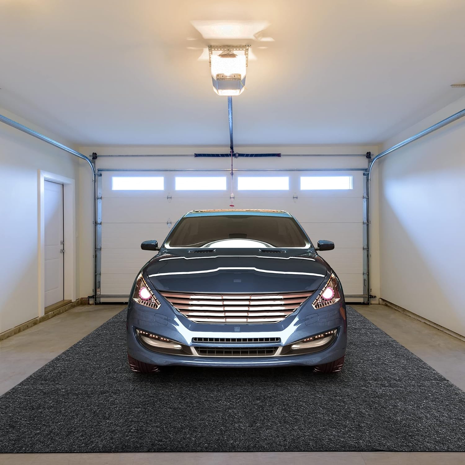 - 【TRIM AND INSTALL】 Garage mat‘s size is 8’10"x22', perfect size for motorcycle, car and your garage floor. Also our garage oil spill mat is easy to cut with scissors and the matt won’t fray. You can create the shape that fit your own garage with your scissors.Make sure your floor is already clean, then lay down your mat! (Wrinkles are normal due to folded packaging, but over time, the crease will disappear).