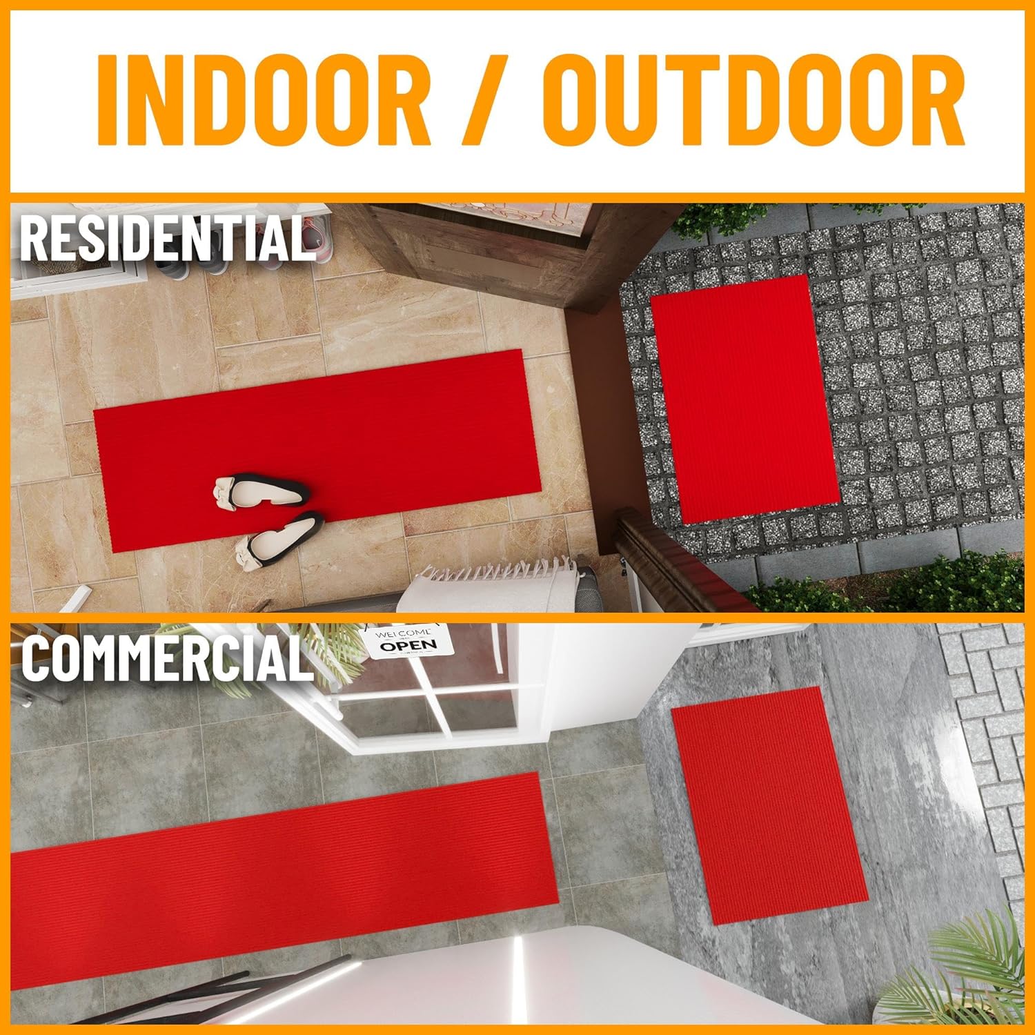 Ottomanson 2' x 18' Hallway Runner with Scraper Pile - Extra Durable Non-Slip Rug Mat for Indoor & Outdoor Use - Ideal for Kitchen, Entryway, Patio & Garage - High-Traffic Carpet, Red