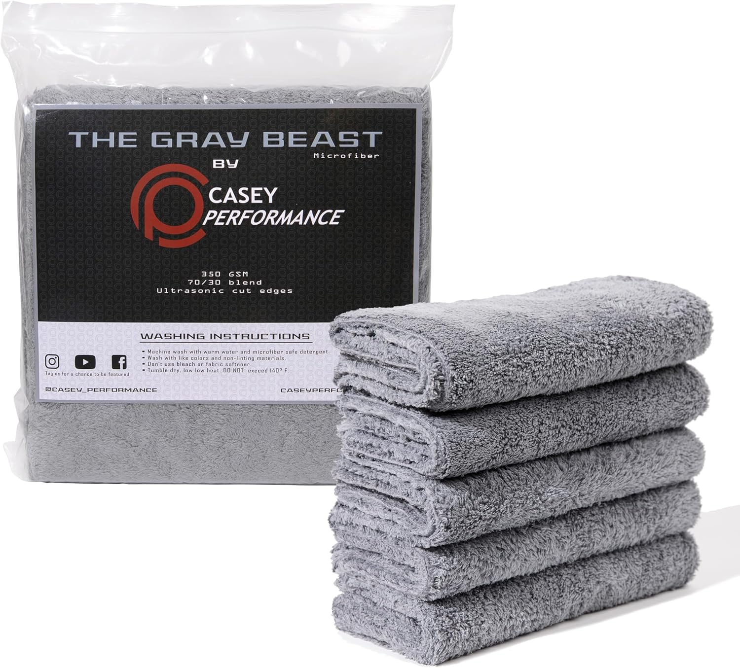 Microfiber Cleaning Cloth - The Gray Beast Towels, Streak-Free Cleaning Rags for Car Wash and Housekeeping, Ultra-Absorbent with Cut Edges to Avoid Scratches (Pack of 5, 16"x16")